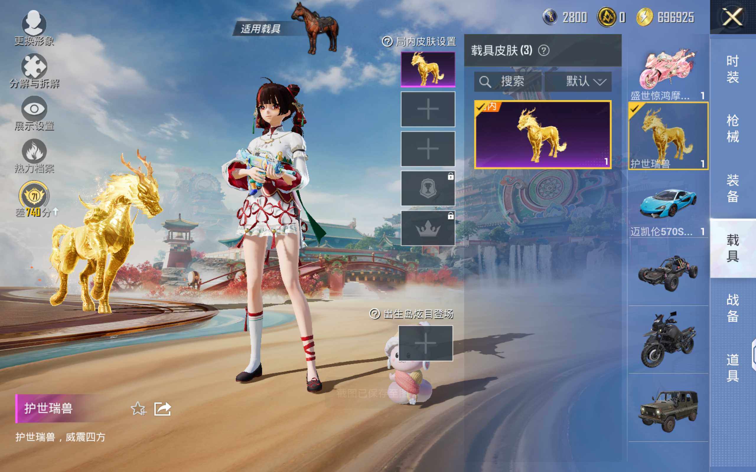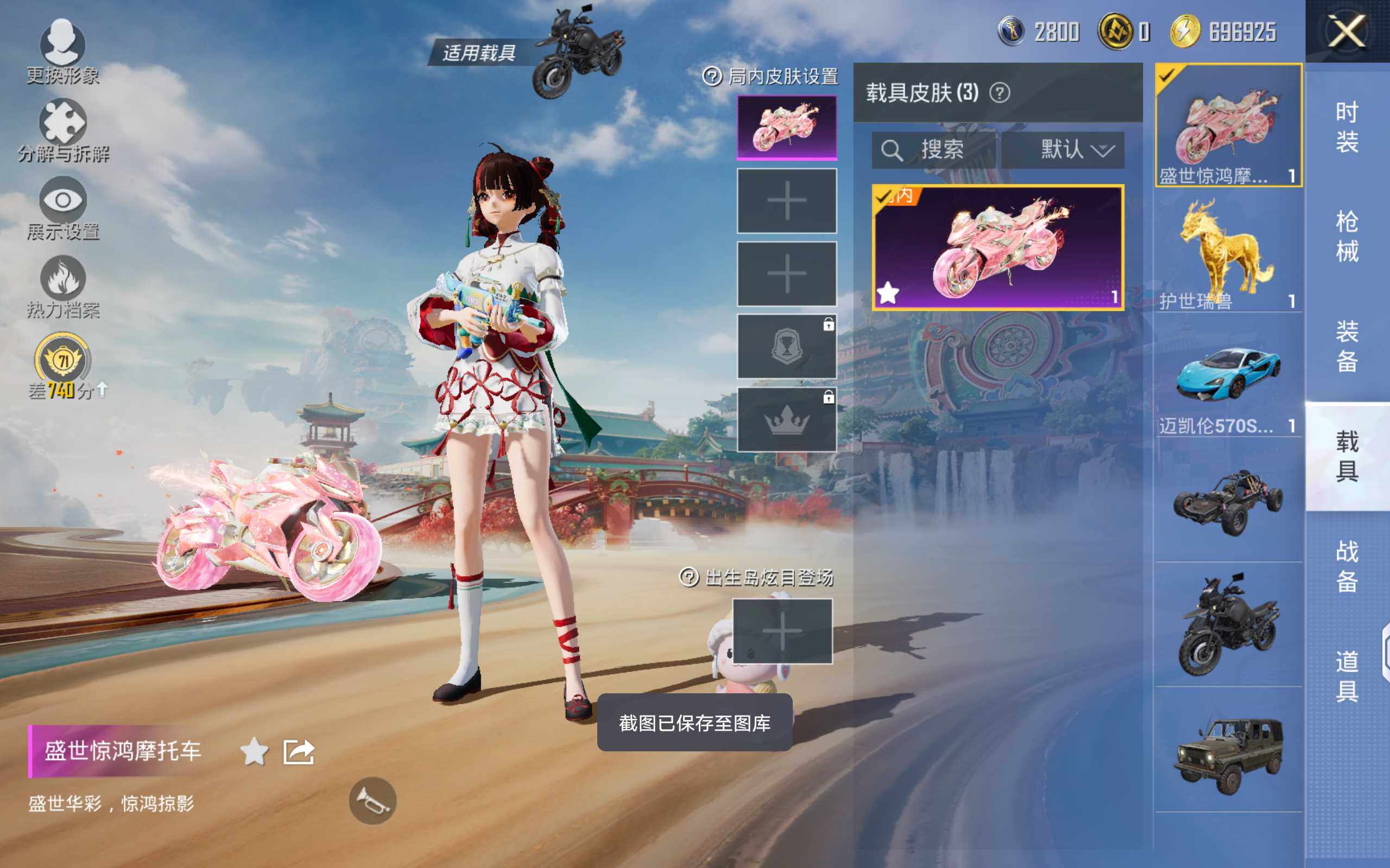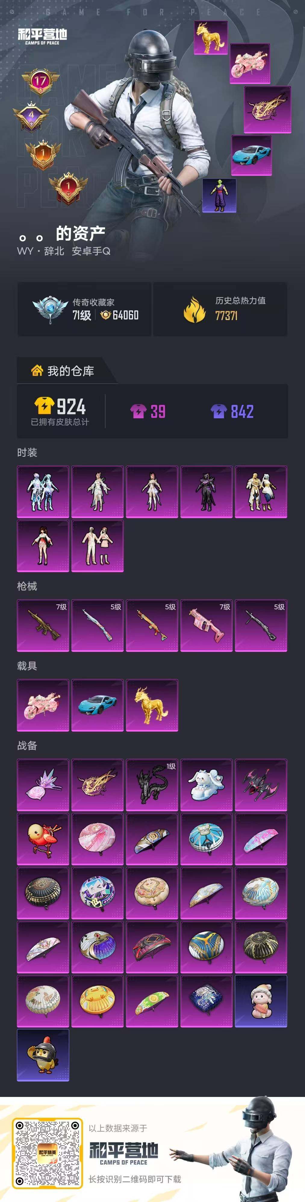 安卓 手Q-7粉装-5特效枪-3载具-6粉色飞行器-77371热力值-17王牌印记-164套装-253枪皮