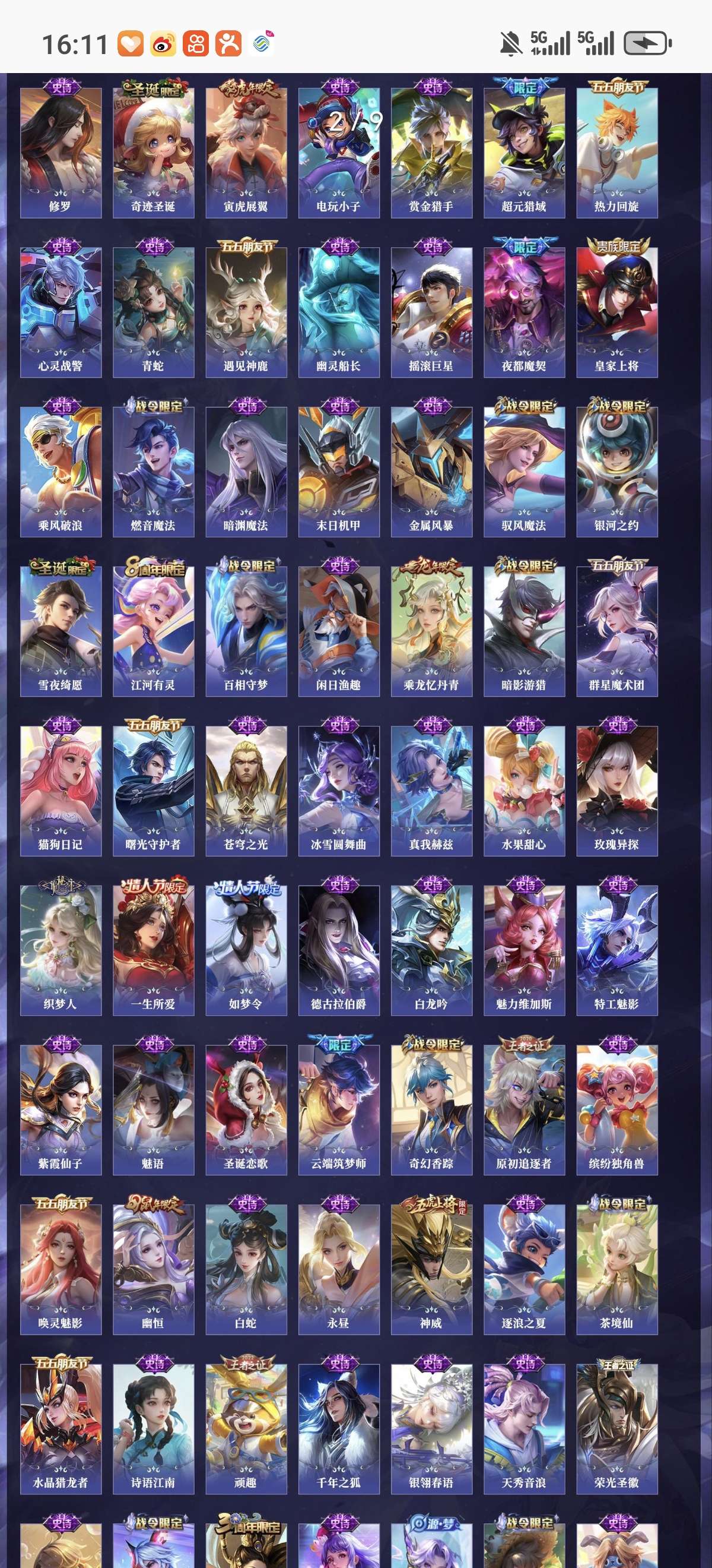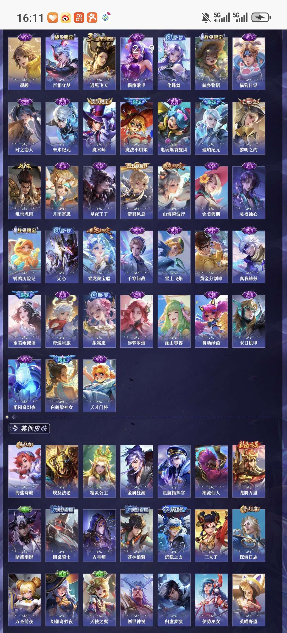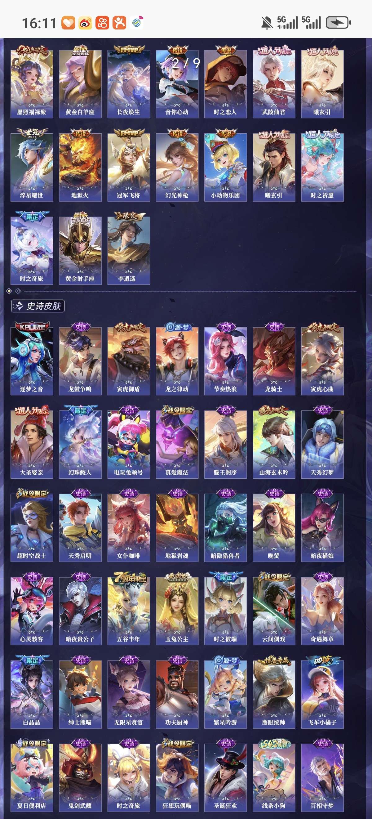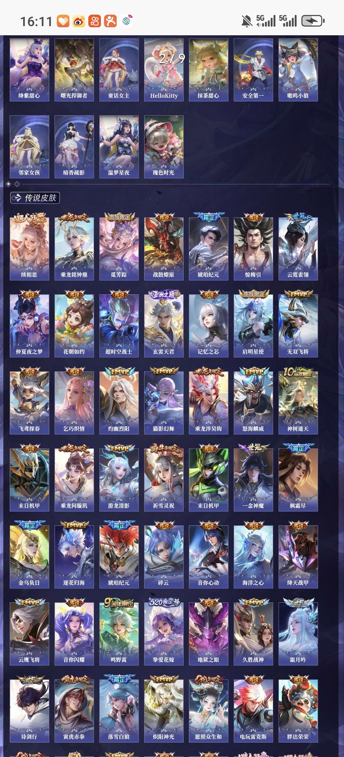 贵族10 荣耀典藏8 无双5 珍品传说2 星元皮肤4 传说皮肤66