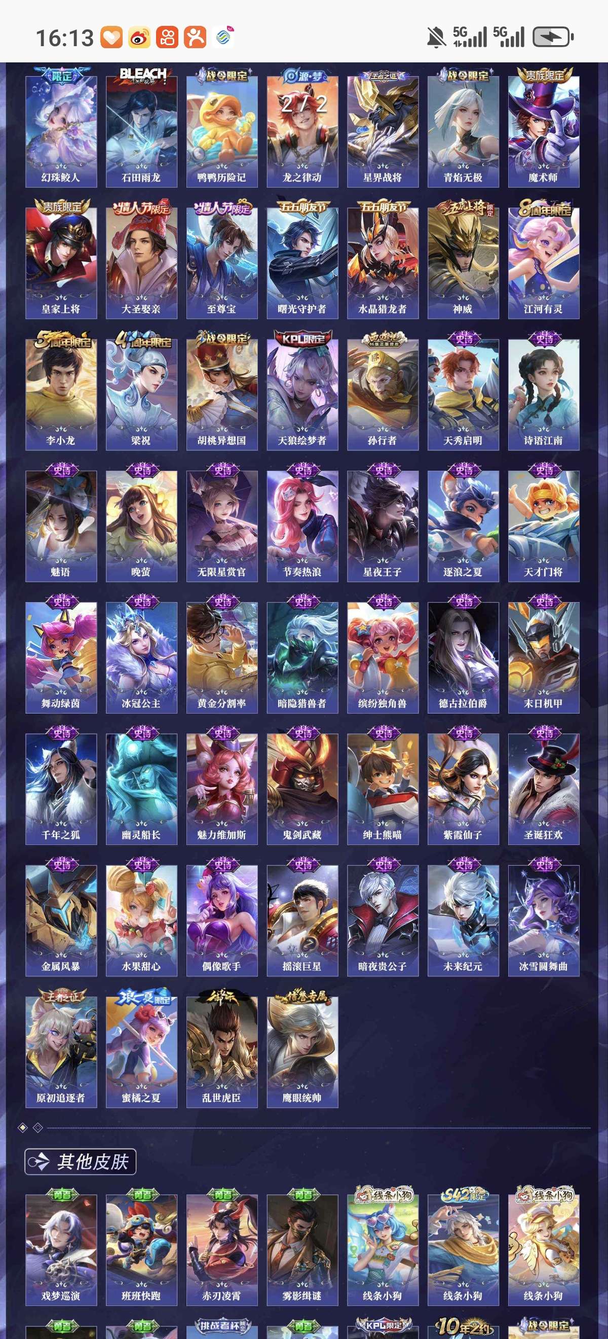 贵族7 荣耀典藏1 无双1 星元皮肤2 传说皮肤9 史诗皮肤61 皮肤数量246