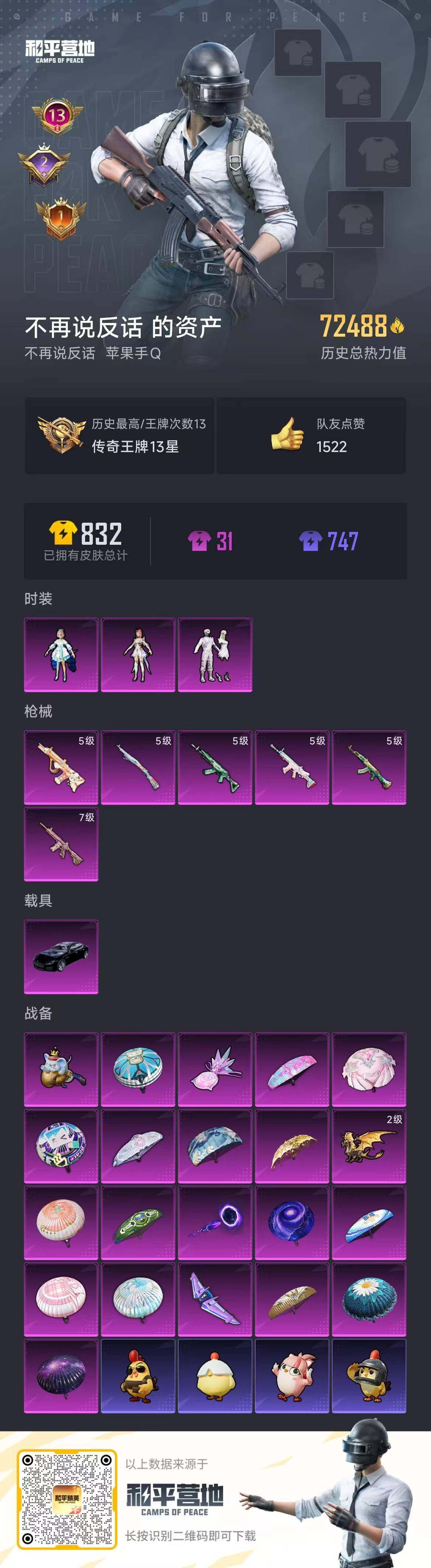 实名: 可修改 时装数: 545 载具数: 1 枪械数: 229 战备数: 1