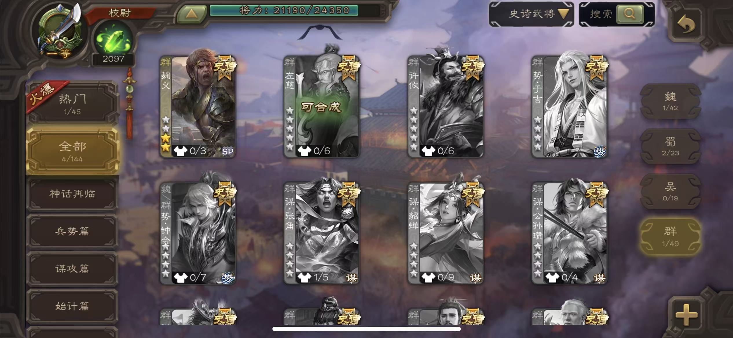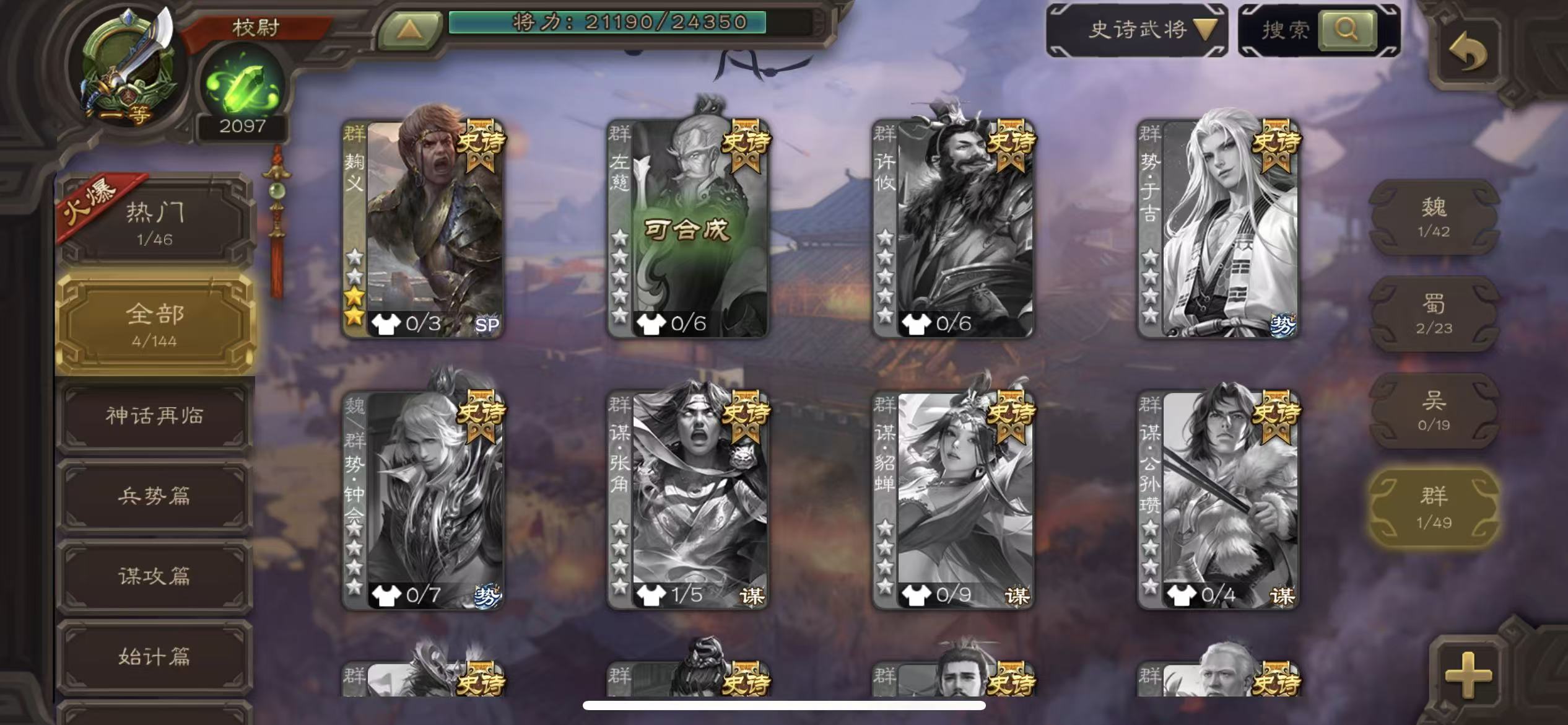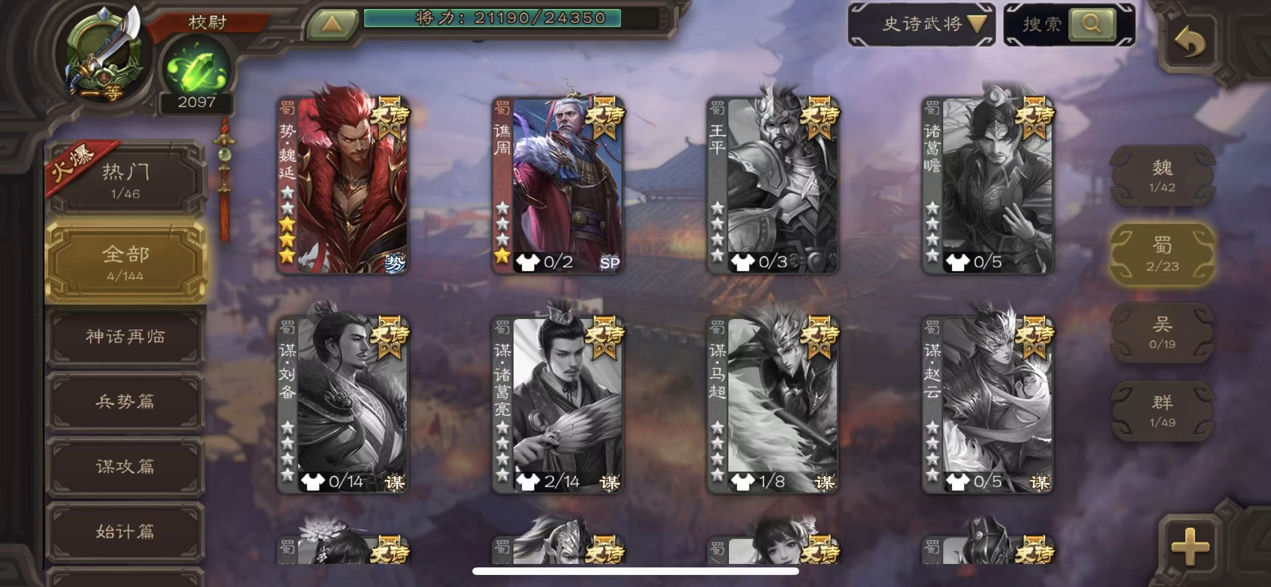 校尉火龙果势魏延白马谯周4史诗5万羽毛三卡