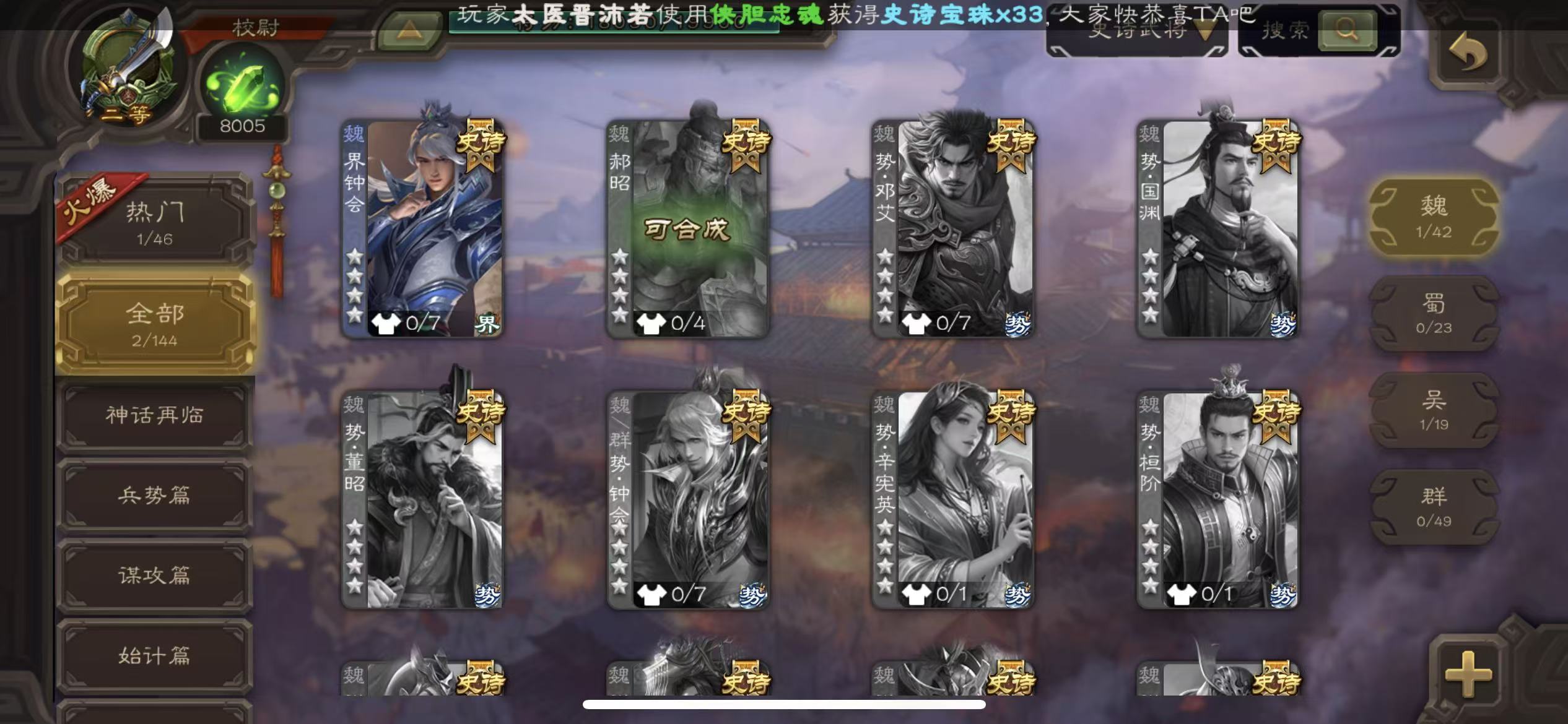 校尉大宝界钟会9万羽毛8000将魂136招募令2.2万银币