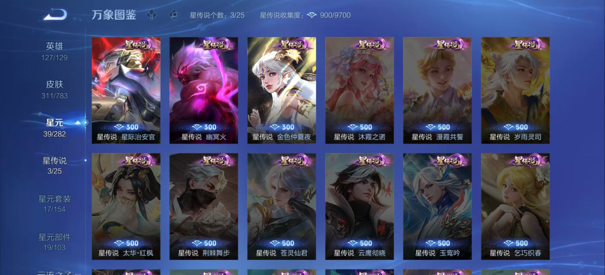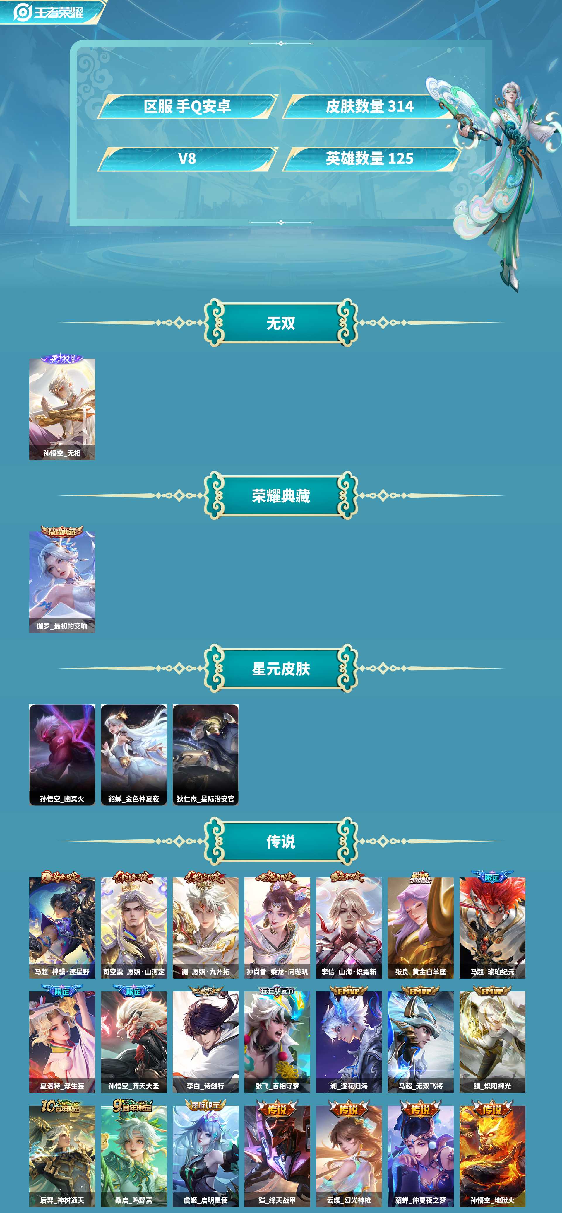 皮肤数量311印记总数12V8最强王者暂时不可修改账号类型3