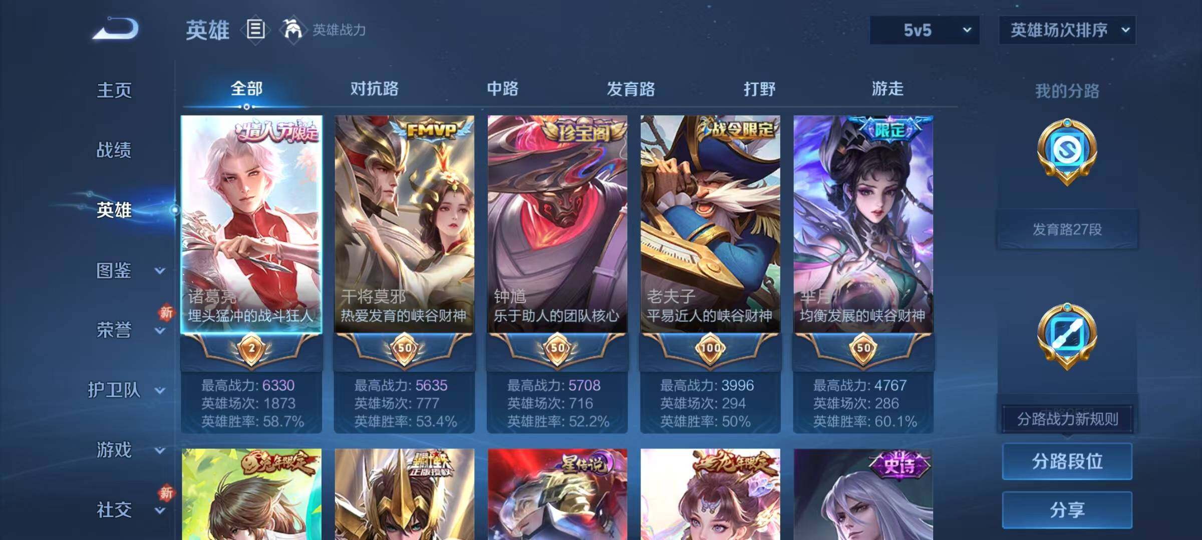 安卓Q-V8-最强王者段位-127英雄-298皮肤-2典藏皮肤-20传说-102史诗