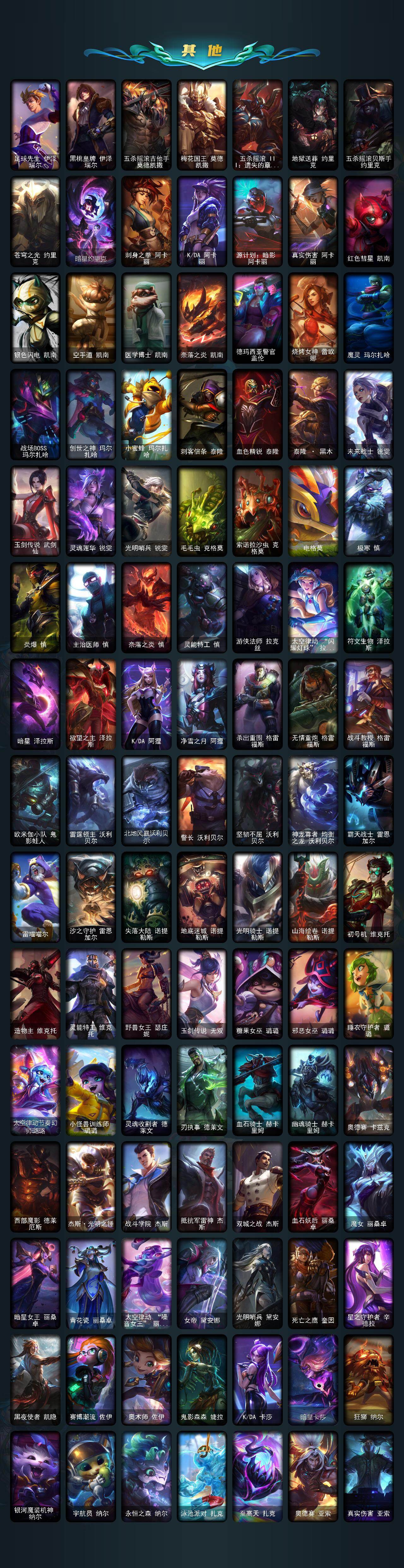 【神话皮肤】:十周年纪念安妮,十五周年纪念希维尔,暗星科加斯,神凰行者瑞羽圣凰艾尼维亚,水晶掠夺者卡兹克,海克斯科技阿木木,海克斯科技嘉文四世,海克斯科技雷克顿,海克斯科技斯维因,恐惧新星德莱厄斯,摄魂使者薇恩,至臻征服者贾克斯,至臻真实伤害赛娜,至臻DRX亚托克斯,至臻福牛守护者菲奥娜,至臻黑夜使者凯隐,至臻黑夜使者李青,至臻黑夜使者李青2022,至臻幻灵战斗猫金克丝,至臻KDA阿狸,至臻KDA