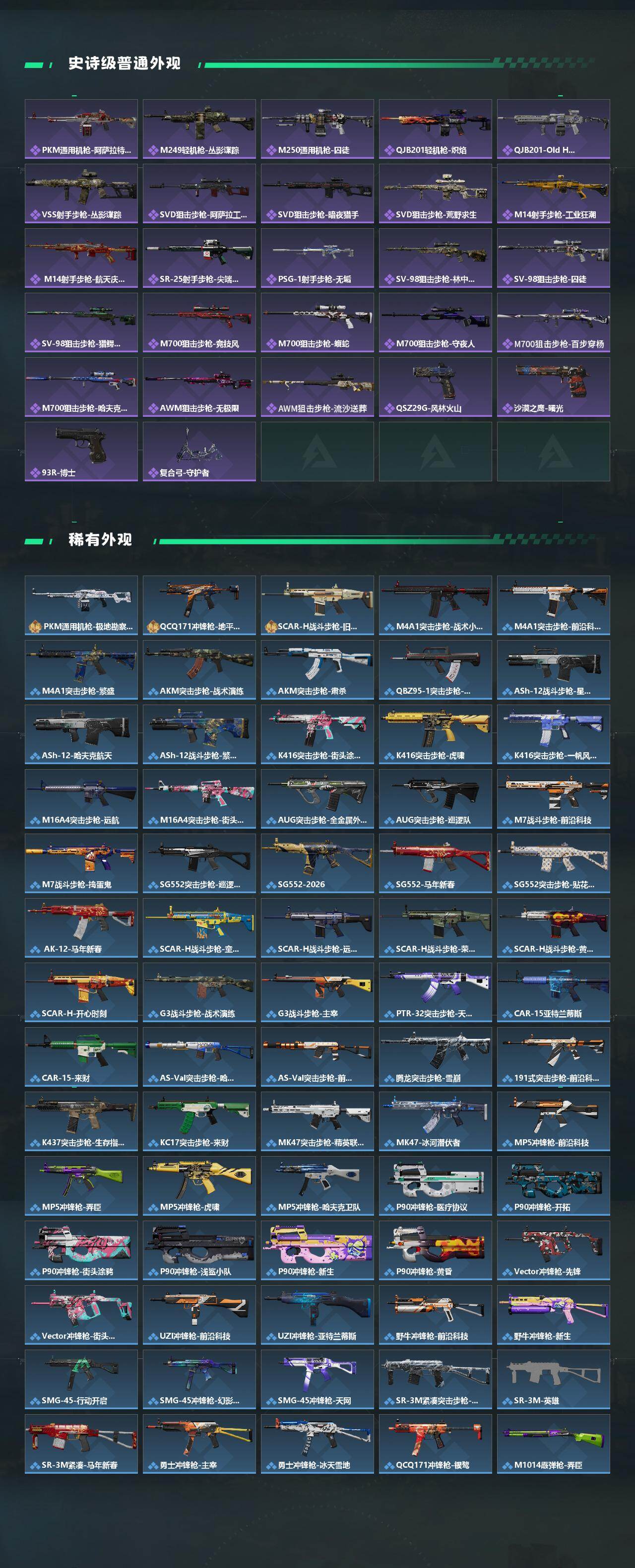 【近战皮肤】:近战-北极星,近战-黑鹰