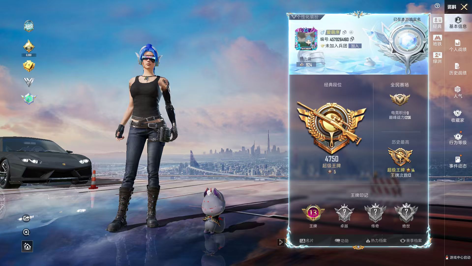 13王牌印记-1红装-10粉装-15特效枪-4载具-74123热力值-156套装-226枪皮