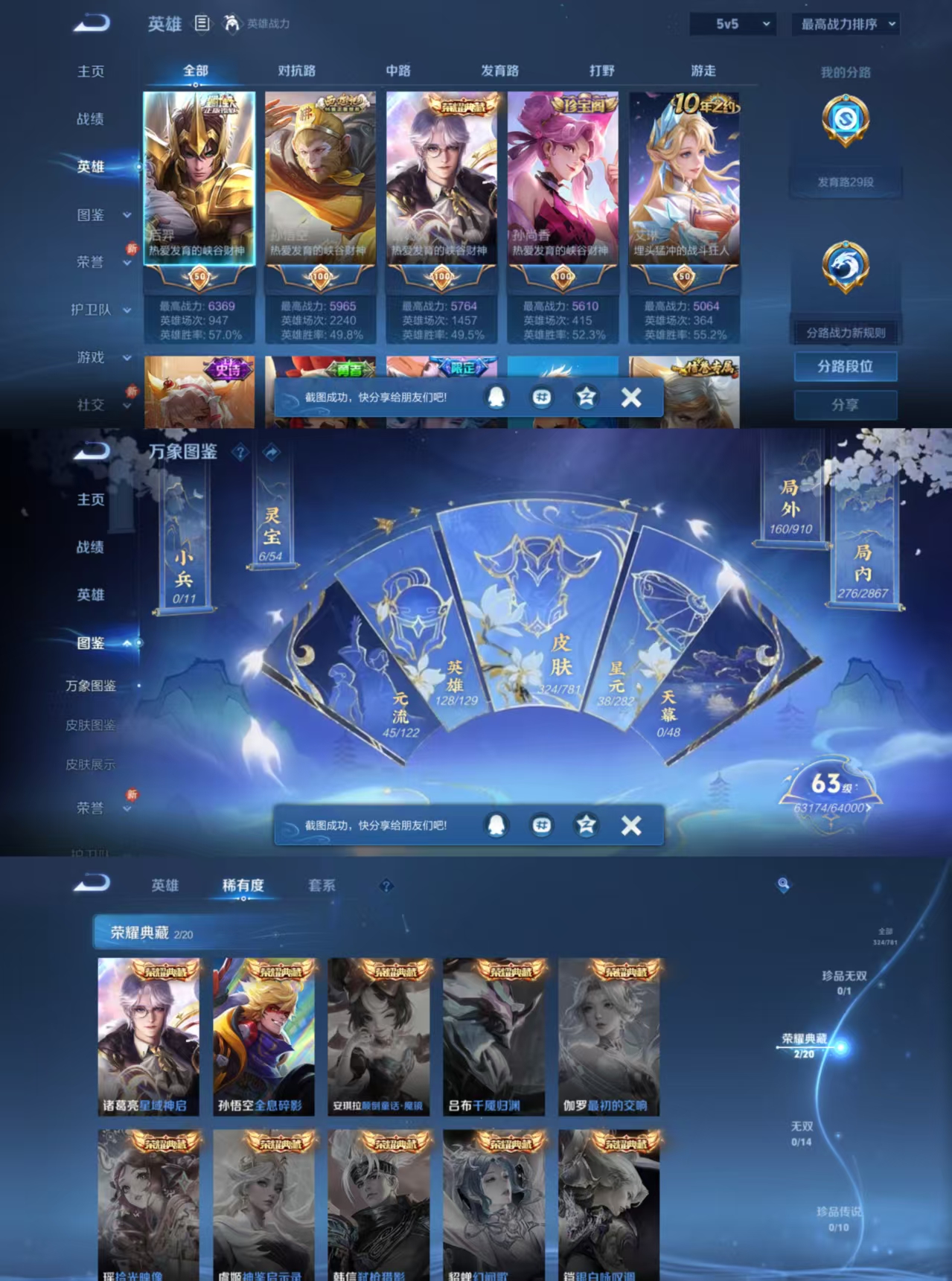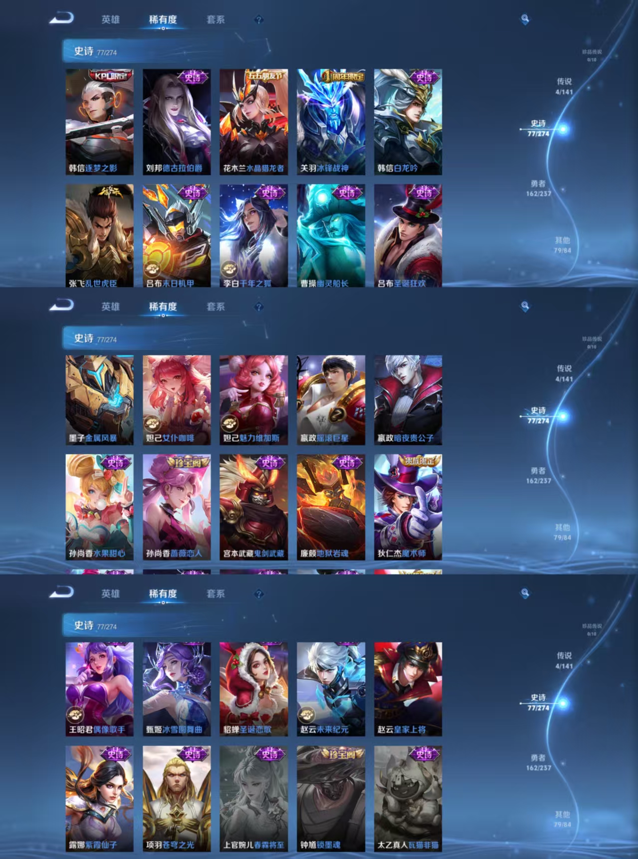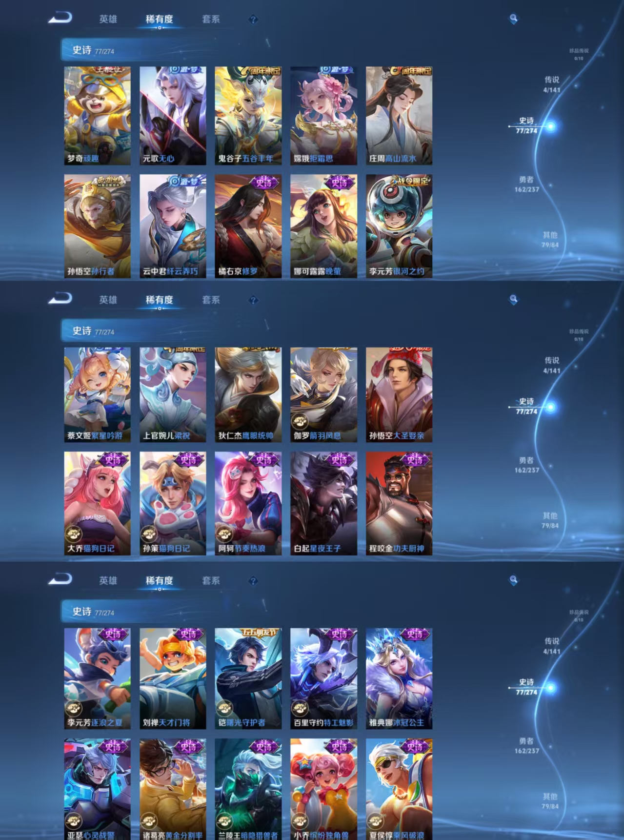 【史诗皮肤】 克喵 蔬乡物语 百相守梦 蔬乡物语 破空之剑 光弋星穹 星界战将 百相守梦 踏浪烽翎 布丁狗之约 冰锋战神 逐梦之影 石田雨龙 涂山容容 死霸装 小满鸭 大圣娶亲 孙行者 地狱燃心 热血海滩 西部游侠 灵野札记 春野闲踪 青焰无极 虚灵犬护 谧流熔炉