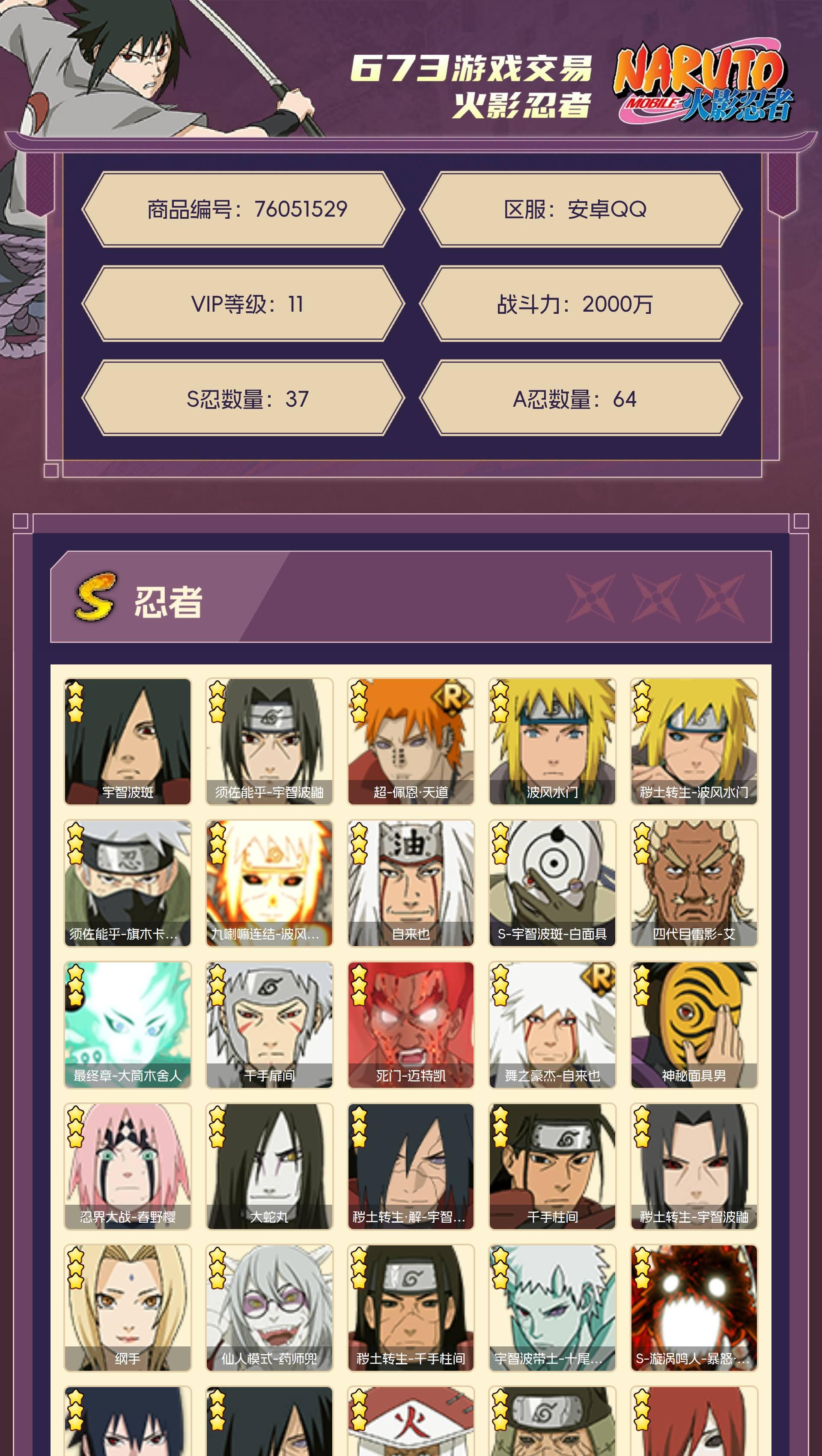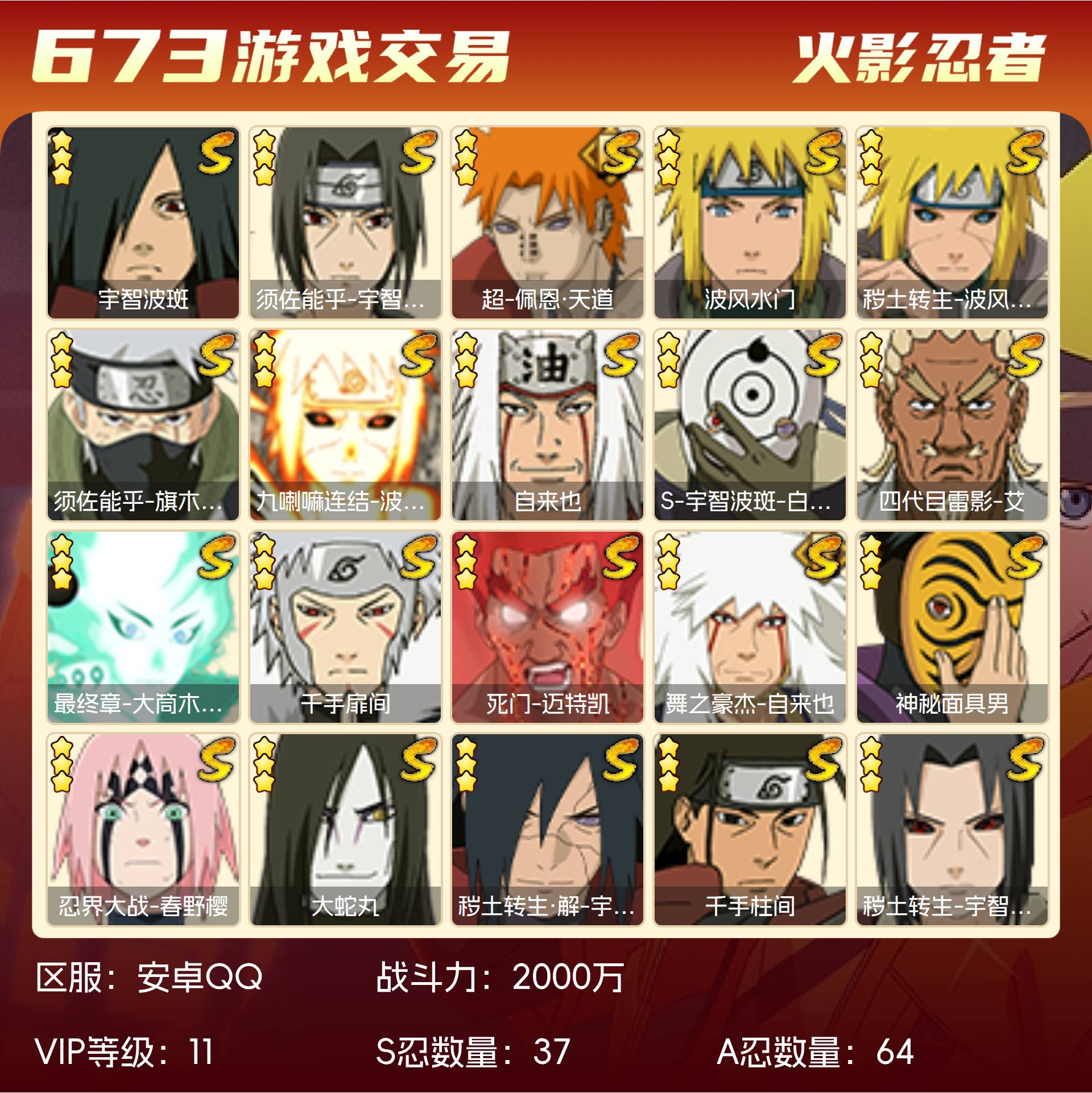 角色等级162 金币3万 战斗力2000万 S忍37 A忍64 5星S忍者1 11 段位暗部