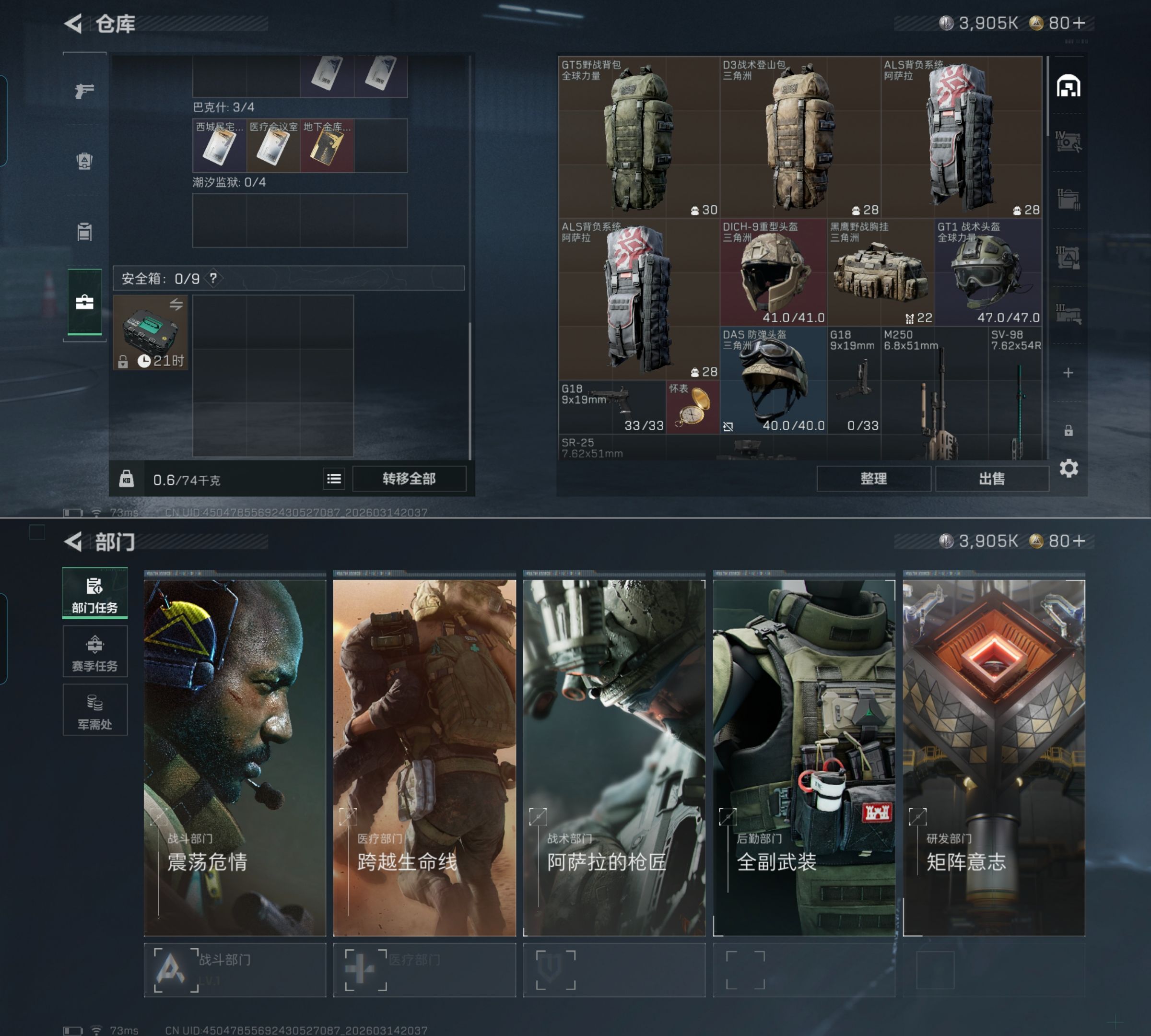 总价值57.89M-哈夫币3,905.83-烽火地带等级33-烽火地带段位铂金
