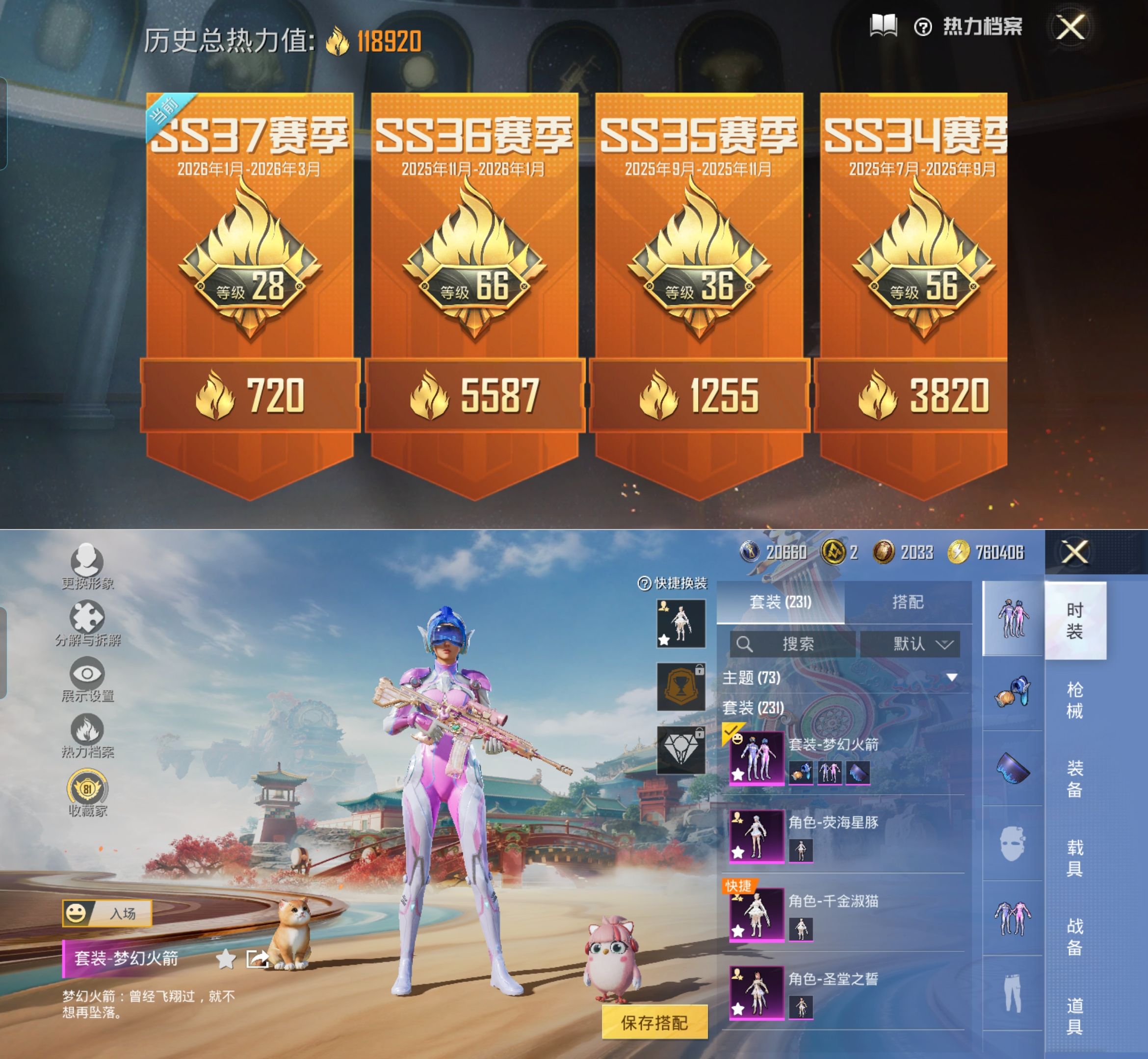 17粉装-10特效枪-232套装-349枪皮-21王牌印记-不朽星钻Ⅲ-118920热力值
