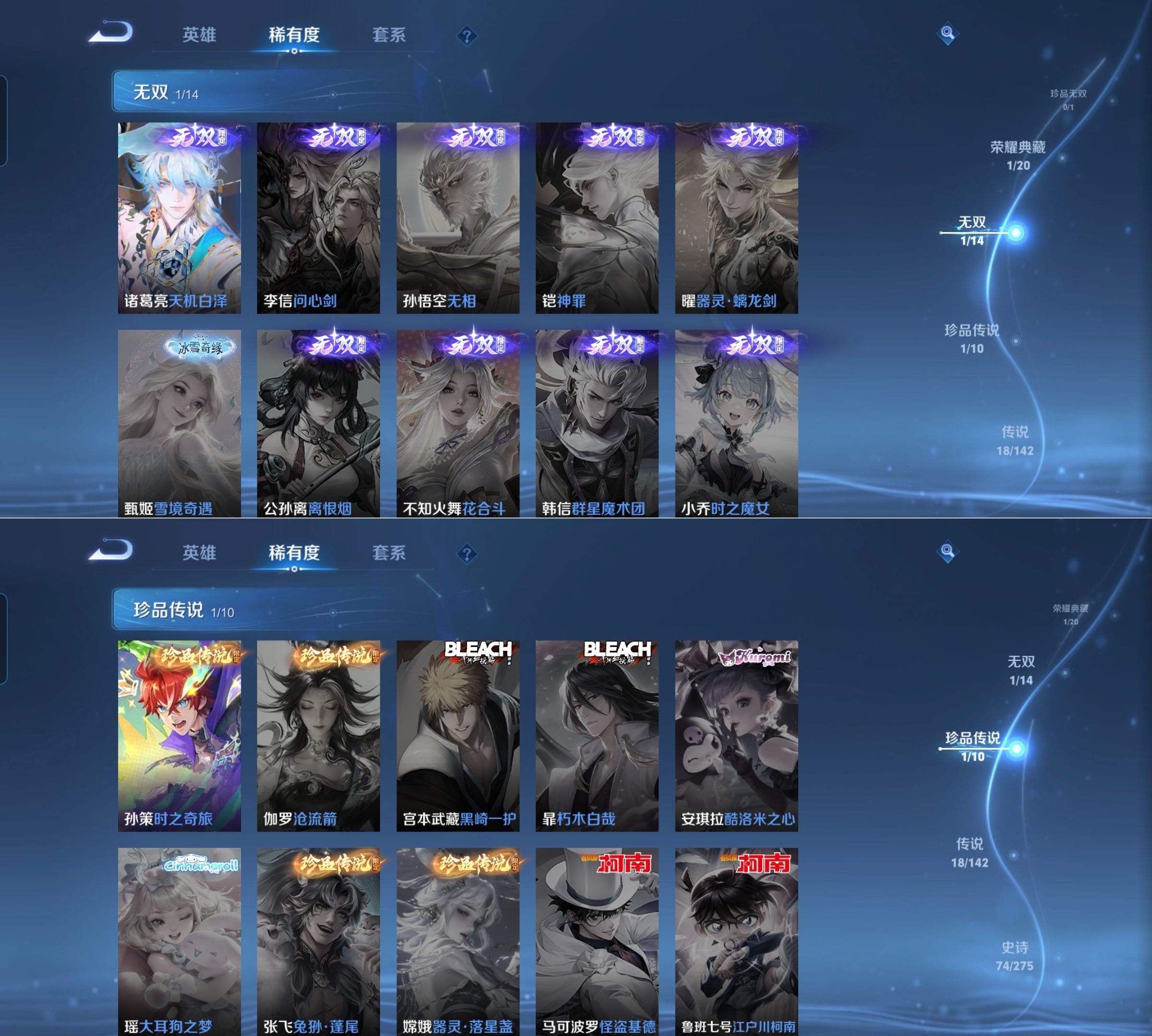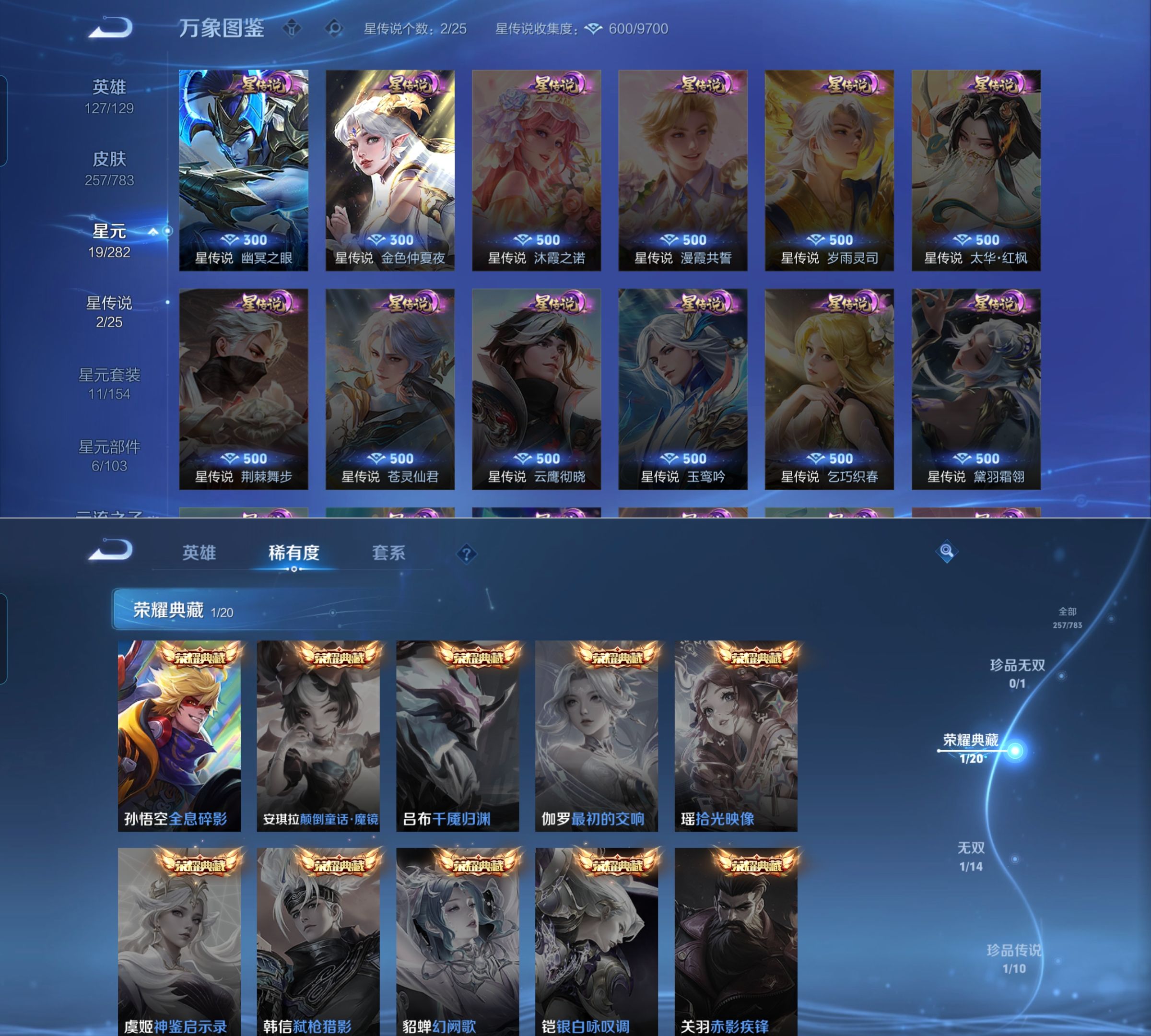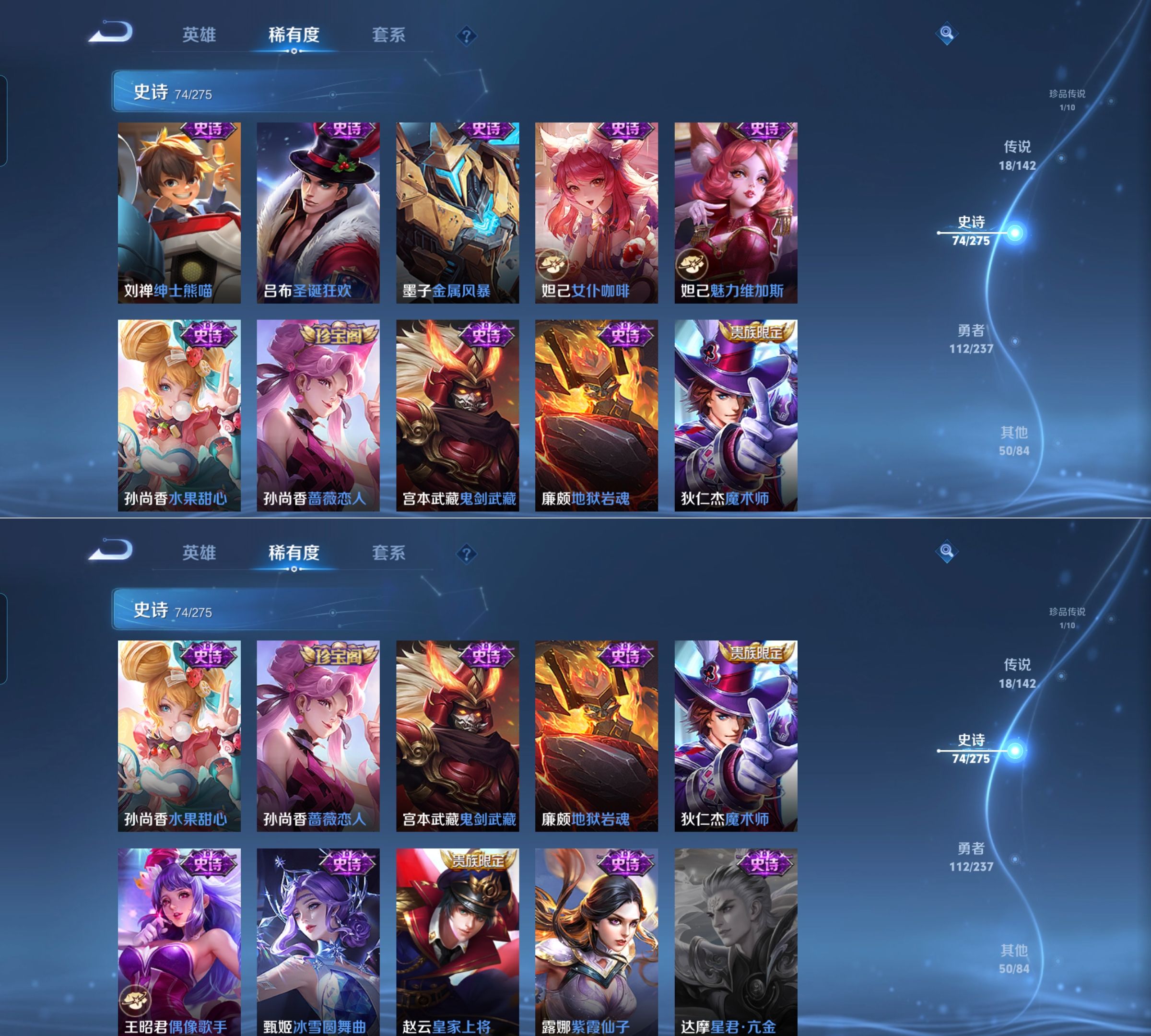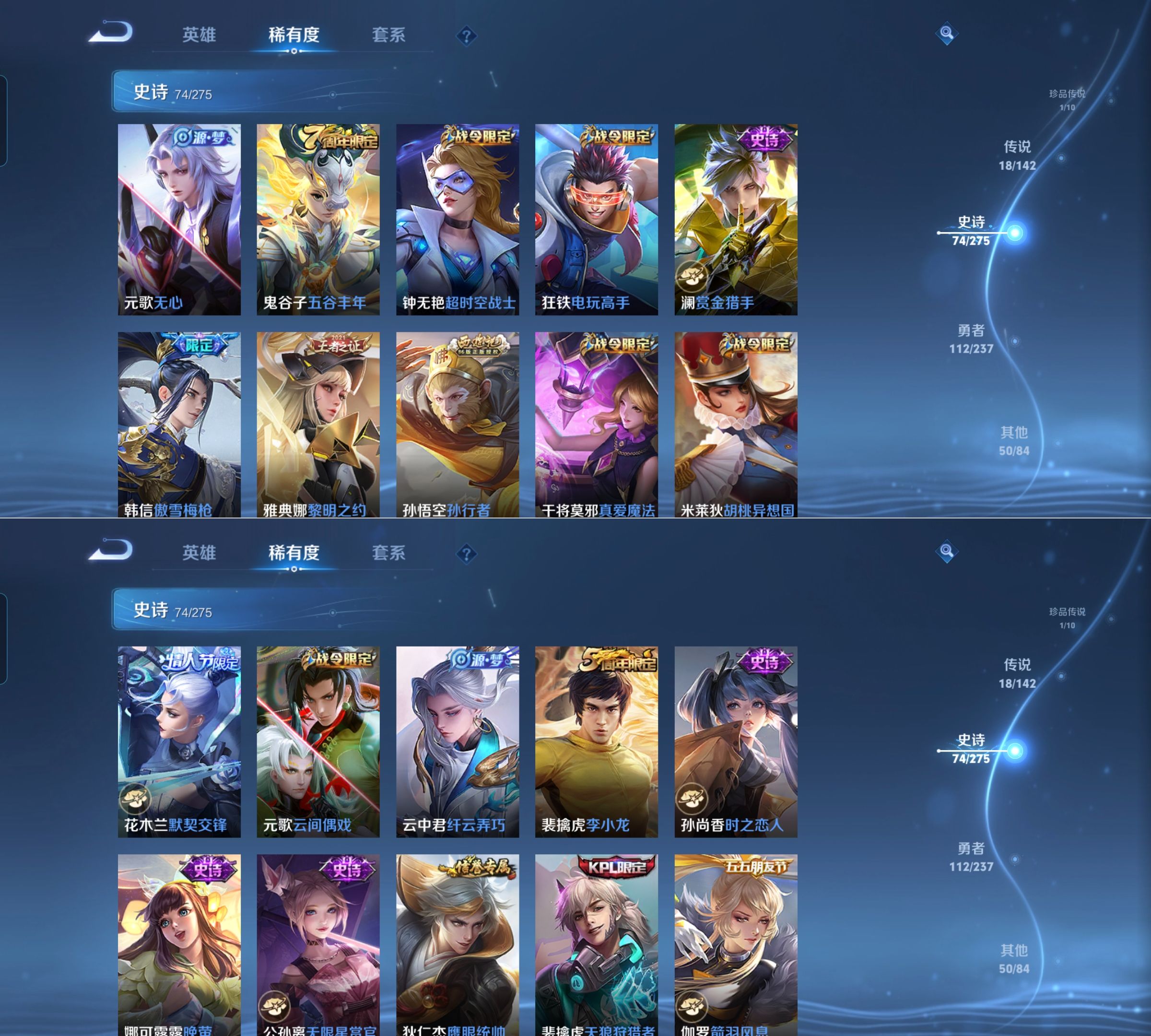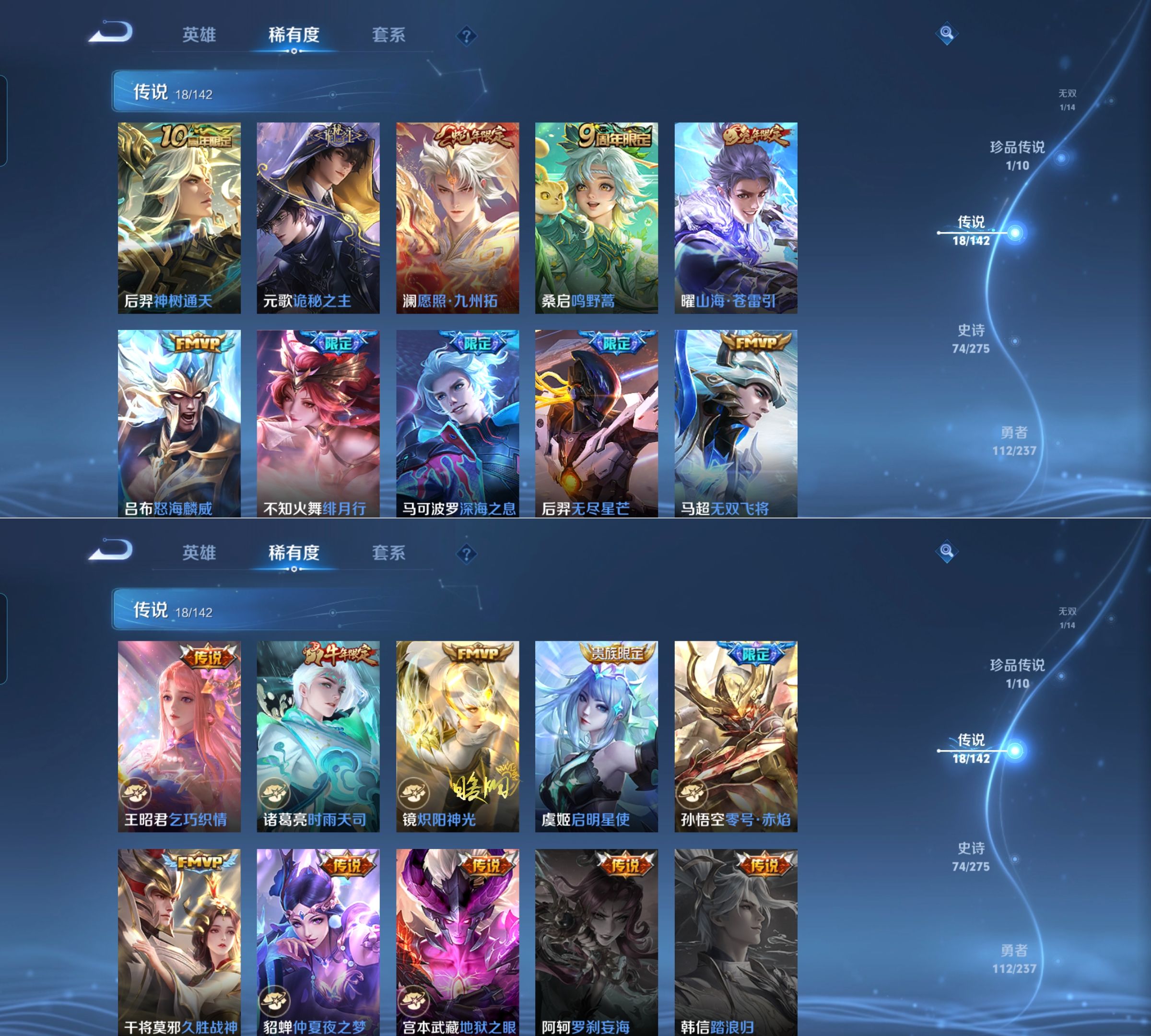 可二次 257皮肤 V8 1典藏 1无双 18传说 1珍品 1小兵 2星传说 幽冥之眼 金色仲夏夜 7078金标马可