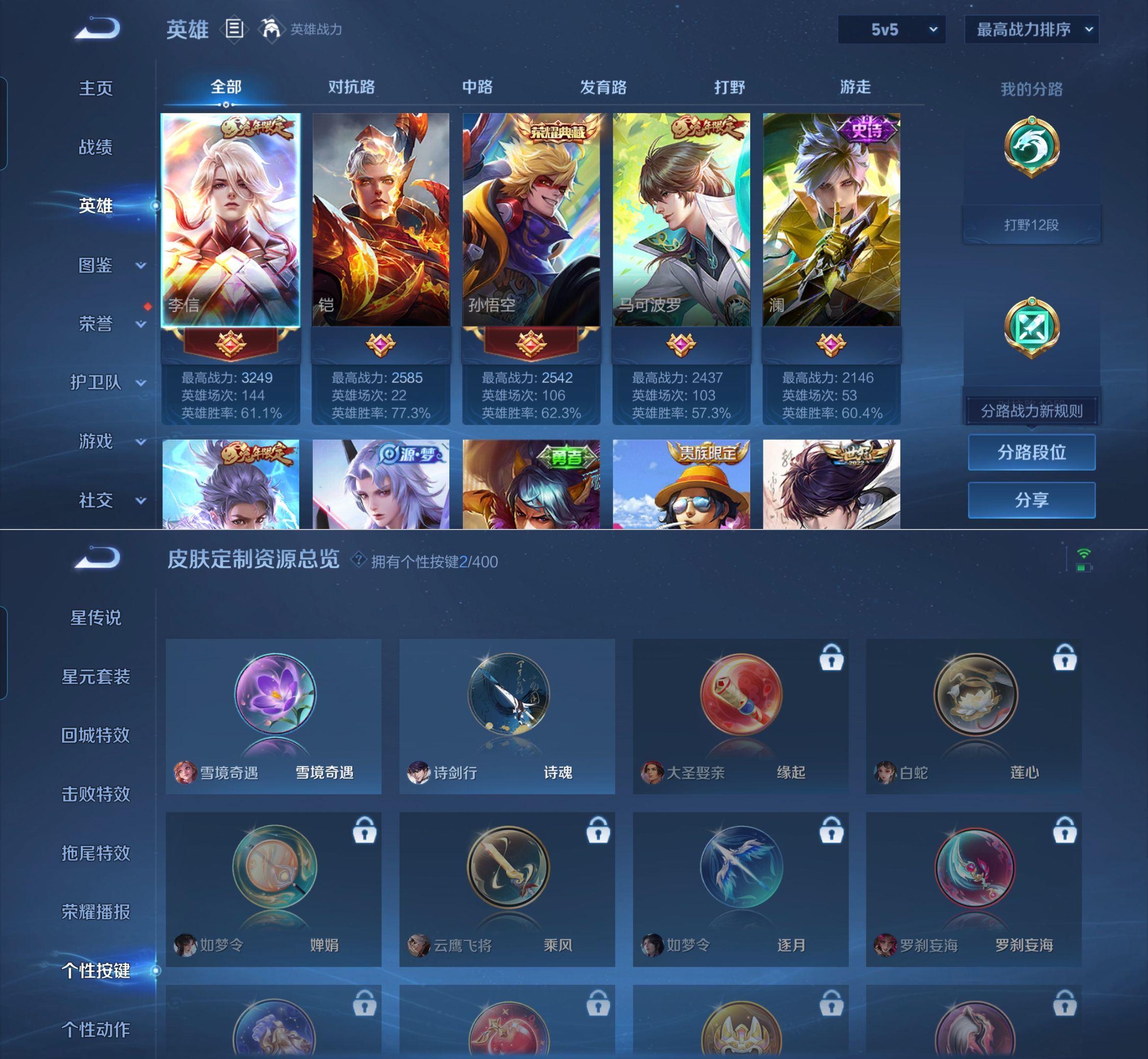 V6 1典藏皮肤3传说30史诗对抗路10段