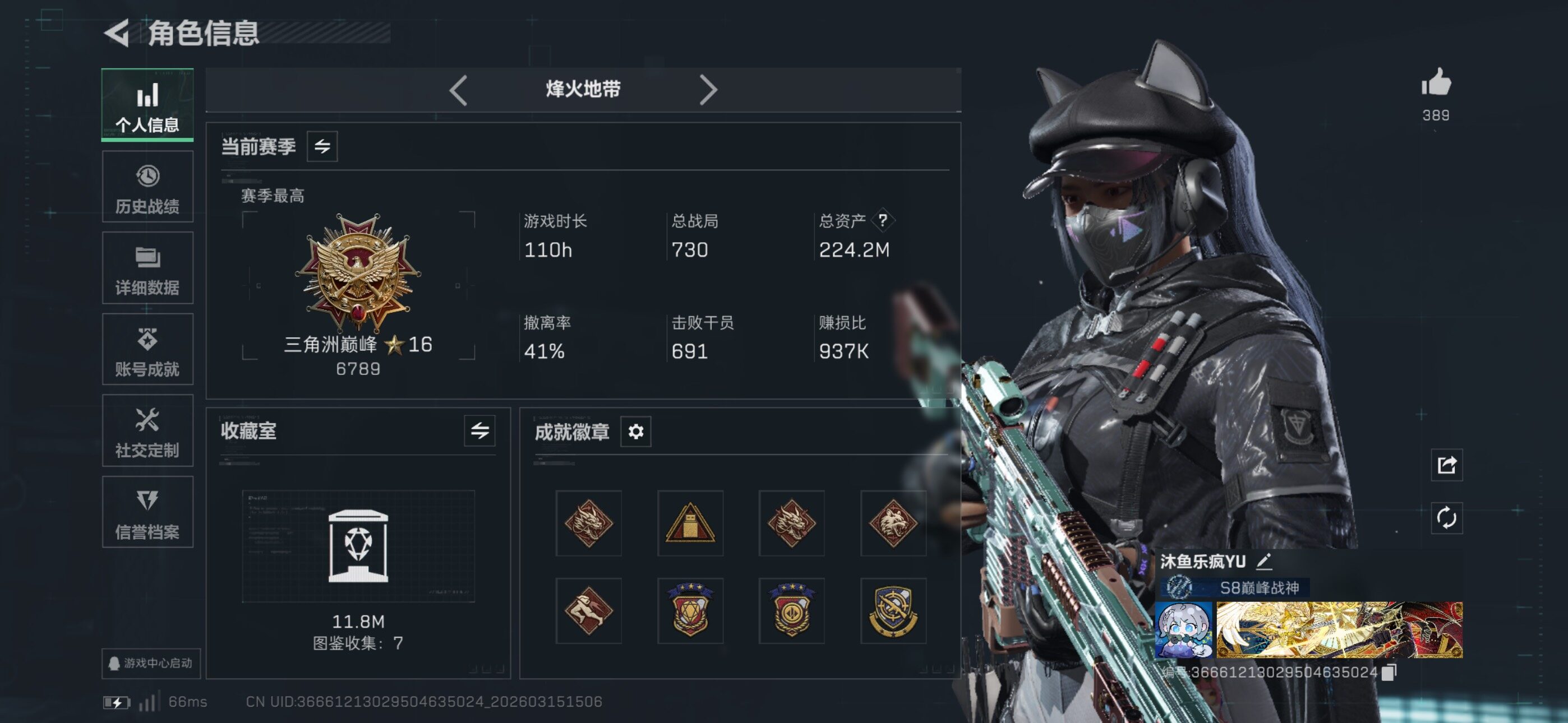 {特价出售}等级:60总资产:224.2M 纯币17175k 红皮:蚀金玫瑰 凌霄戍卫 铁面判官 壮志凌云 黑天际线 水墨云图刀皮 暗星 怜悯 黑海 信条 砖皮:优品a m7 优品a mp7 特勤处:仓库8,训练7,靶场7 潜水3 部门33433蜂医-送葬人·无题密令,牧羊人-街头之王,无名-夜鹰,深蓝-不破誓约,红狼-电锯惊魂,露娜-金牌射手,乌鲁鲁-荒原猎手