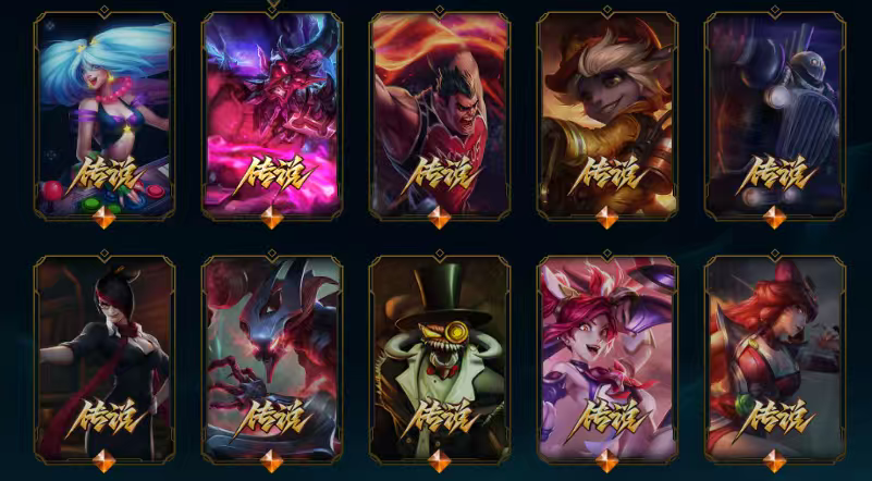 【神话皮肤】:十周年纪念安妮,源代码乐芙兰,十五周年纪念希维尔,神凰行者瑞羽圣凰艾尼维亚,黎明使者卡尔玛,海克斯科技安妮,海克斯科技嘉文四世,海克斯科技卡萨丁,恐惧新星德莱厄斯,零之枪骑赫卡里姆,摄魂使者薇恩,至臻黑夜使者李青,至臻黑夜使者李青2022,至臻KDAALLOUT卡莎,至臻神凰行者烈羽焰凰霞,至臻神龙尊者炎龙瑟提,至臻王国机神玄武盖伦,至臻腥红之月亚托克斯,至臻腥红之月亚托克斯2022,
