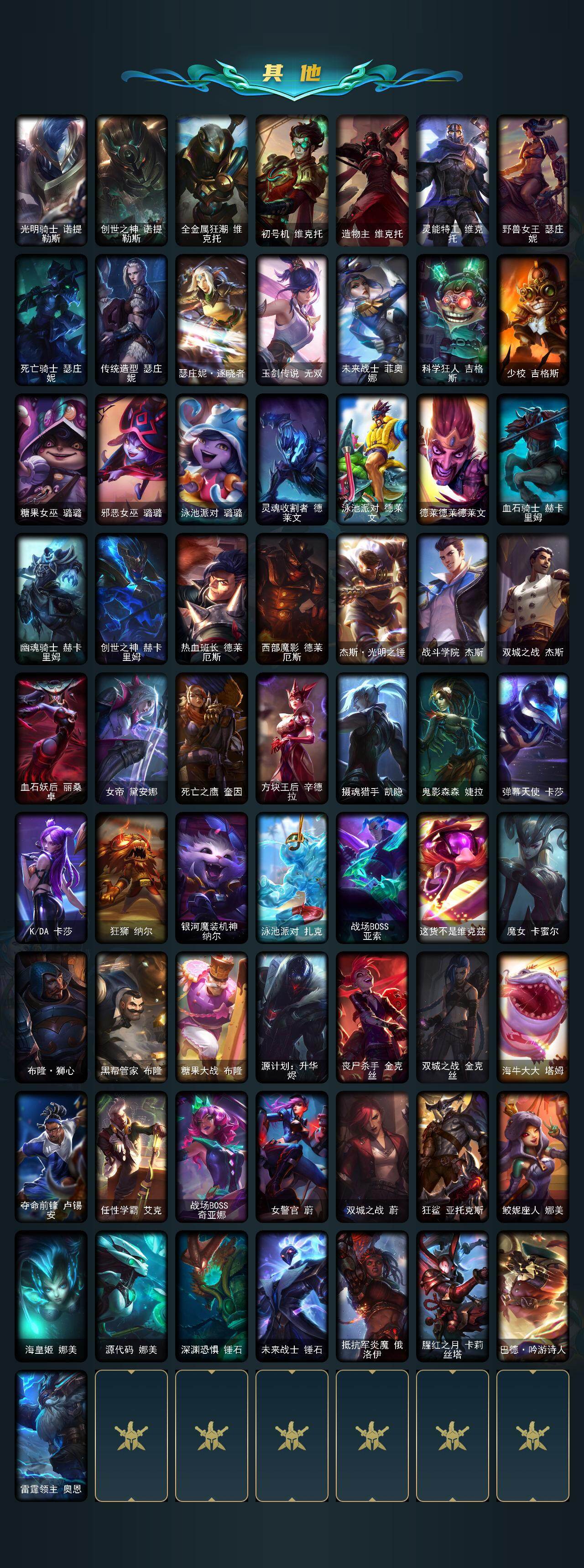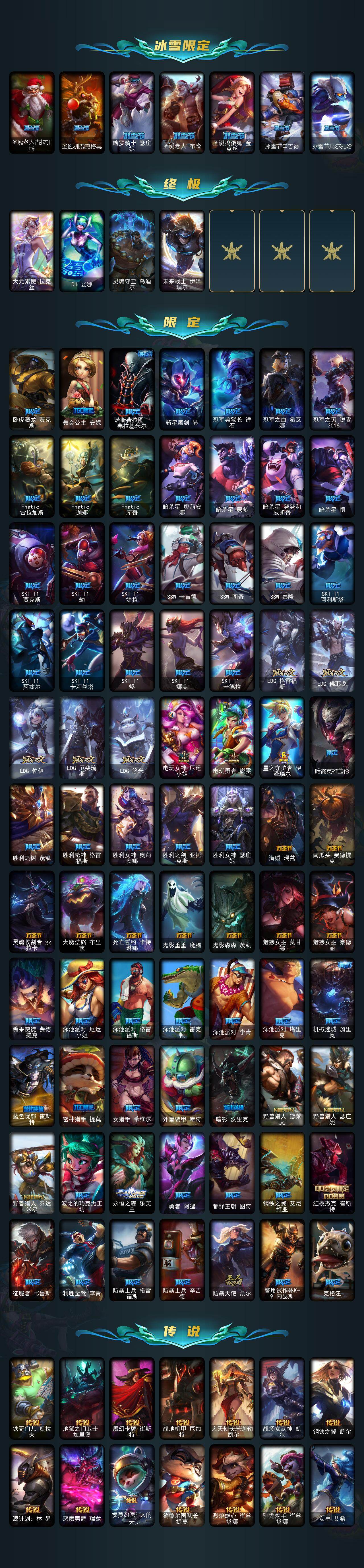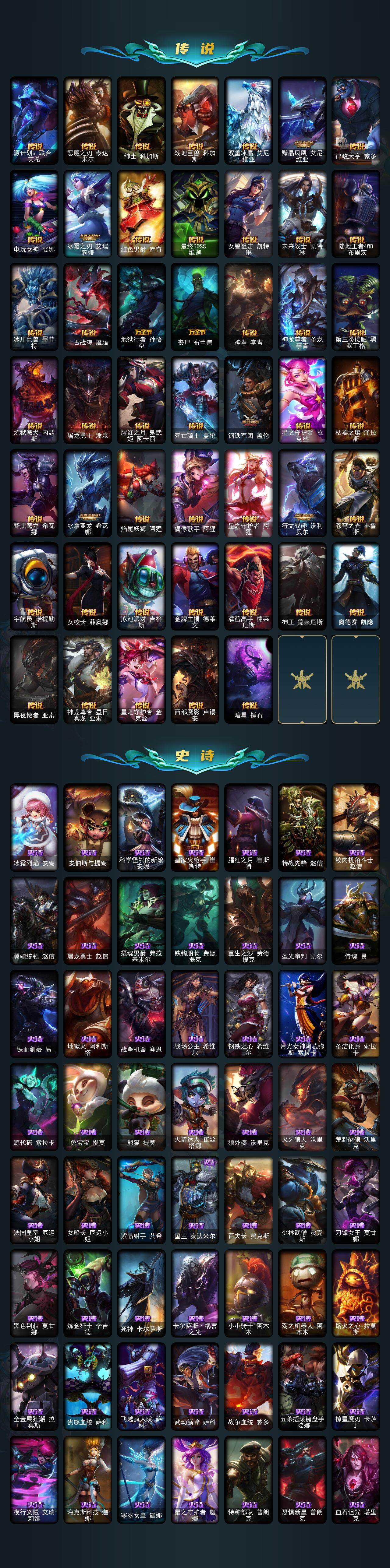 白银段位-172英雄-738皮肤-105炫彩-4终极-21神话-117限定-61传说-194史诗