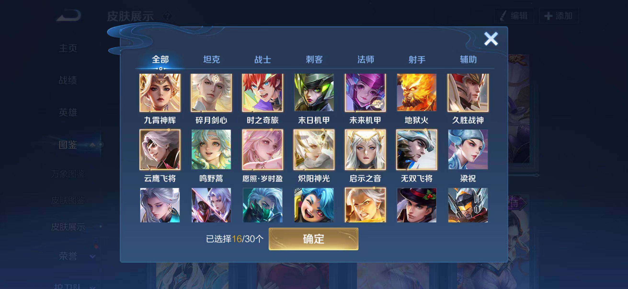 李白无双,木兰典藏,孙策珍品,孙尚香粉末日机甲,镜炽阳神光,虞姬年限,