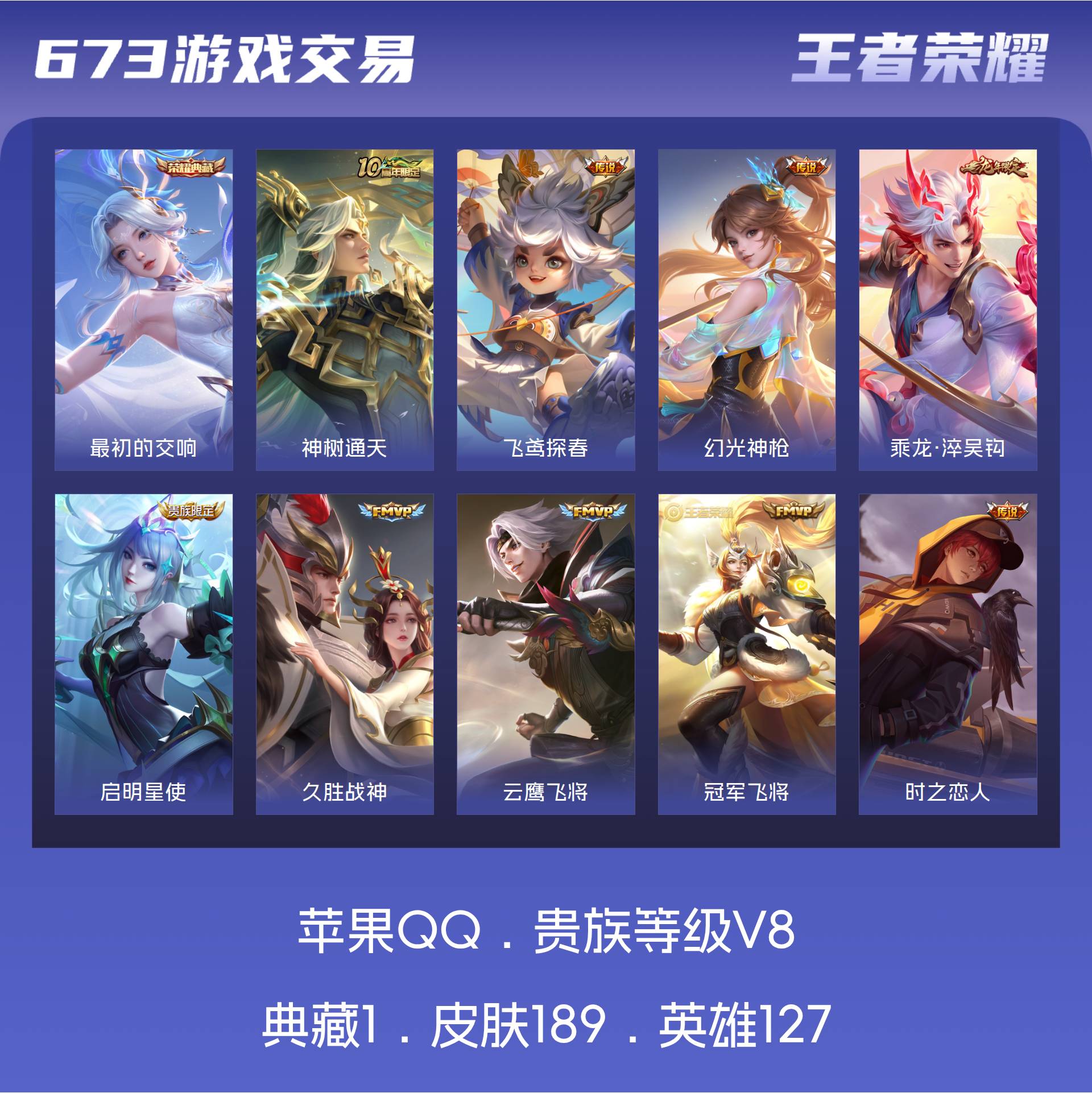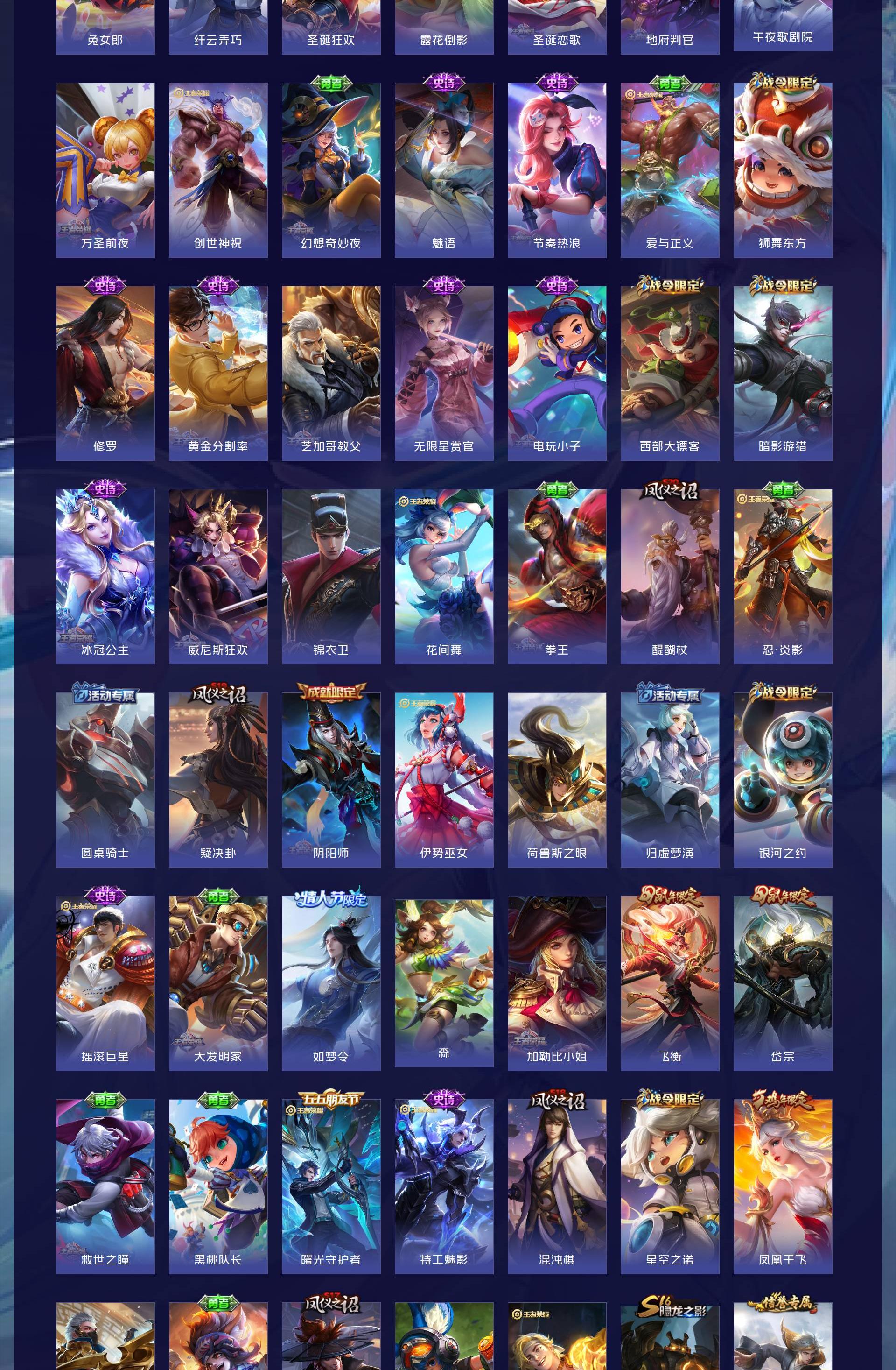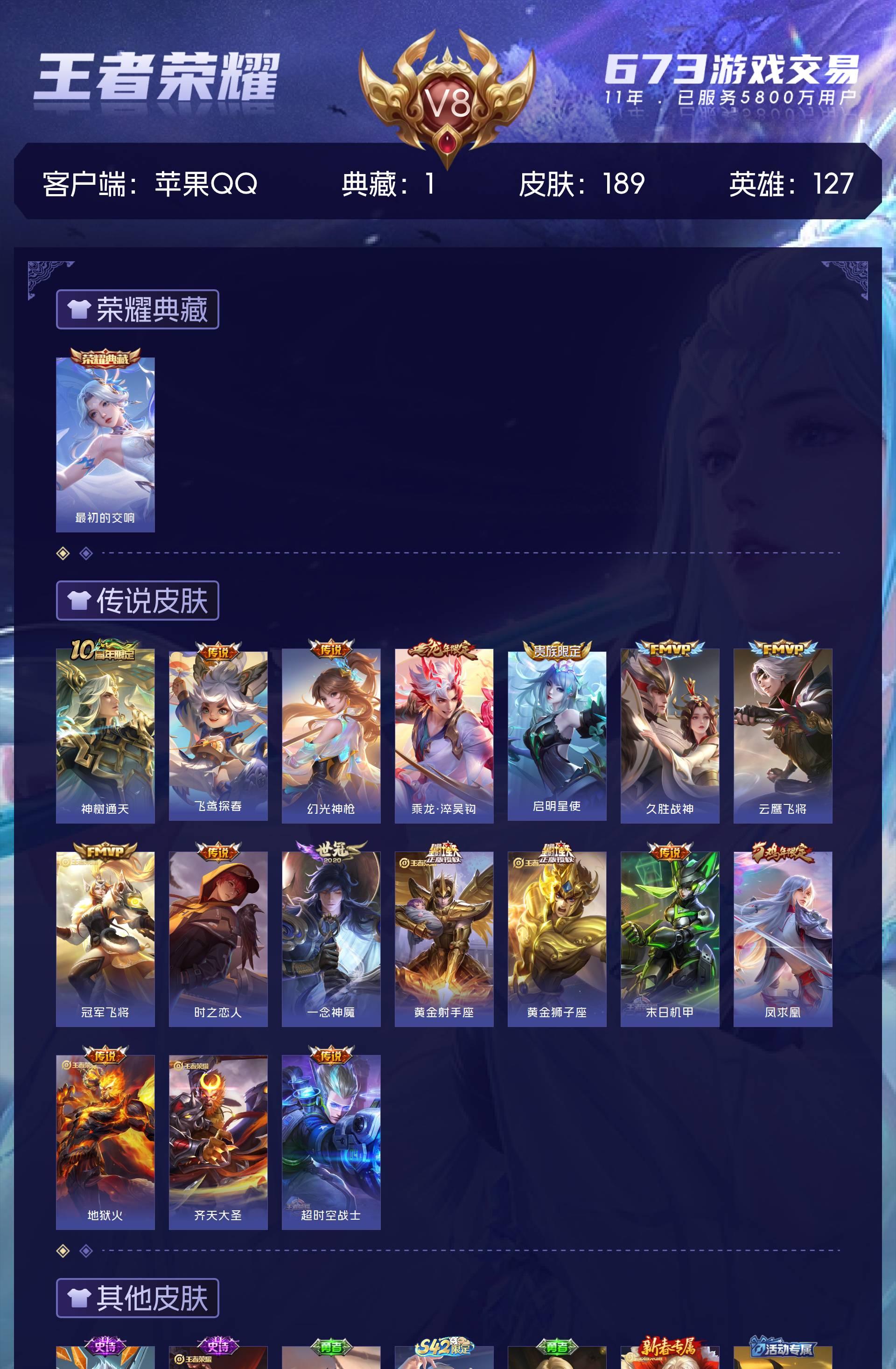 V8 皮肤189 英雄127 永恒钻石 荣耀典藏1 传说17 其他皮肤178