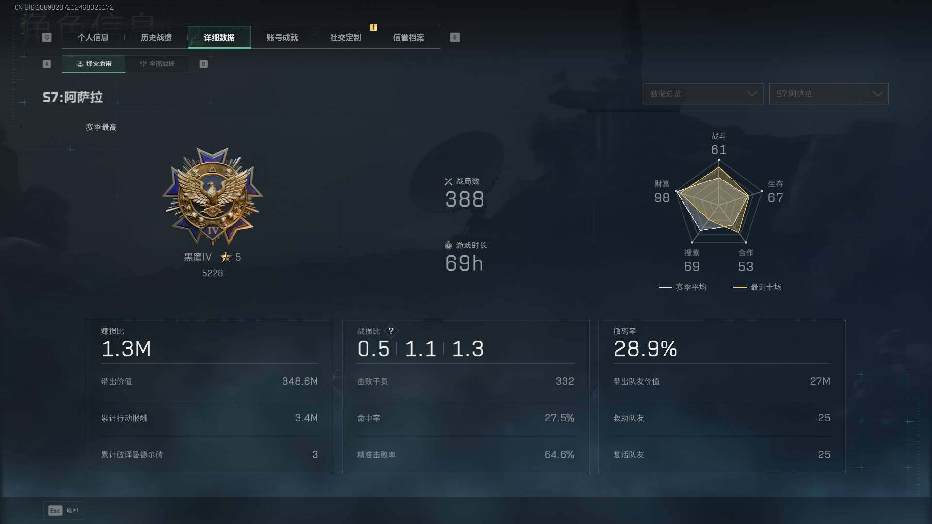 【SJZYT307】总资产(M):107M/哈夫币(K):740K/哈夫币(K):740K/传说枪皮数:28/全面战场等级:39_段位:上等兵/烽火地带等级:60_段位:黑鹰/露娜-黑·天际线/威龙-壮志凌云/蜂医-送葬人·无题密令/无名-夜鹰/深蓝-不破誓约/红狼-电锯惊魂/近战-北极星/近战-信条/近战-黑鹰/M7战斗步枪-棱镜攻势S2/M4A1突击步枪-阿米娅/ASh-12战斗步枪-鹅鸭杀/AK-12突击步枪-夜鹰/AK-12突击步枪-特斯拉线圈/SCAR-H战斗步枪-铁艺苍穹/SCAR-