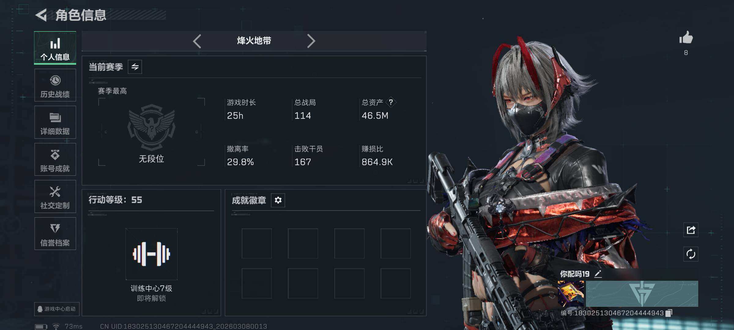 46m总资产-23096k哈伏币-55烽火等级-青铜-11战场等级-列兵