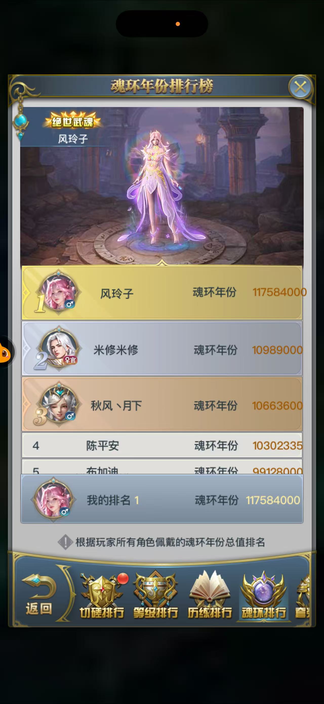 大奖满,积分满,大小活动满,14排大奖,魂环全是百万年,区一,神界前三,威望十几万,随便打,中枢如图