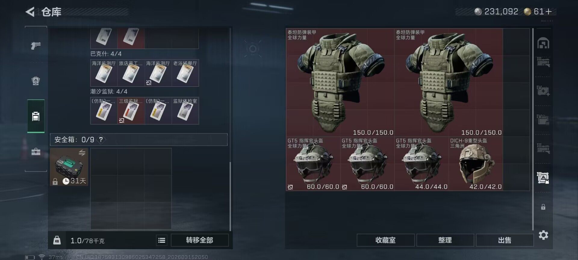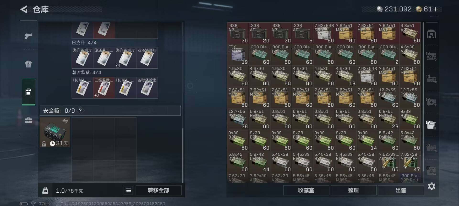 总资产(M):169M/哈夫币(K):231K/哈夫币(K