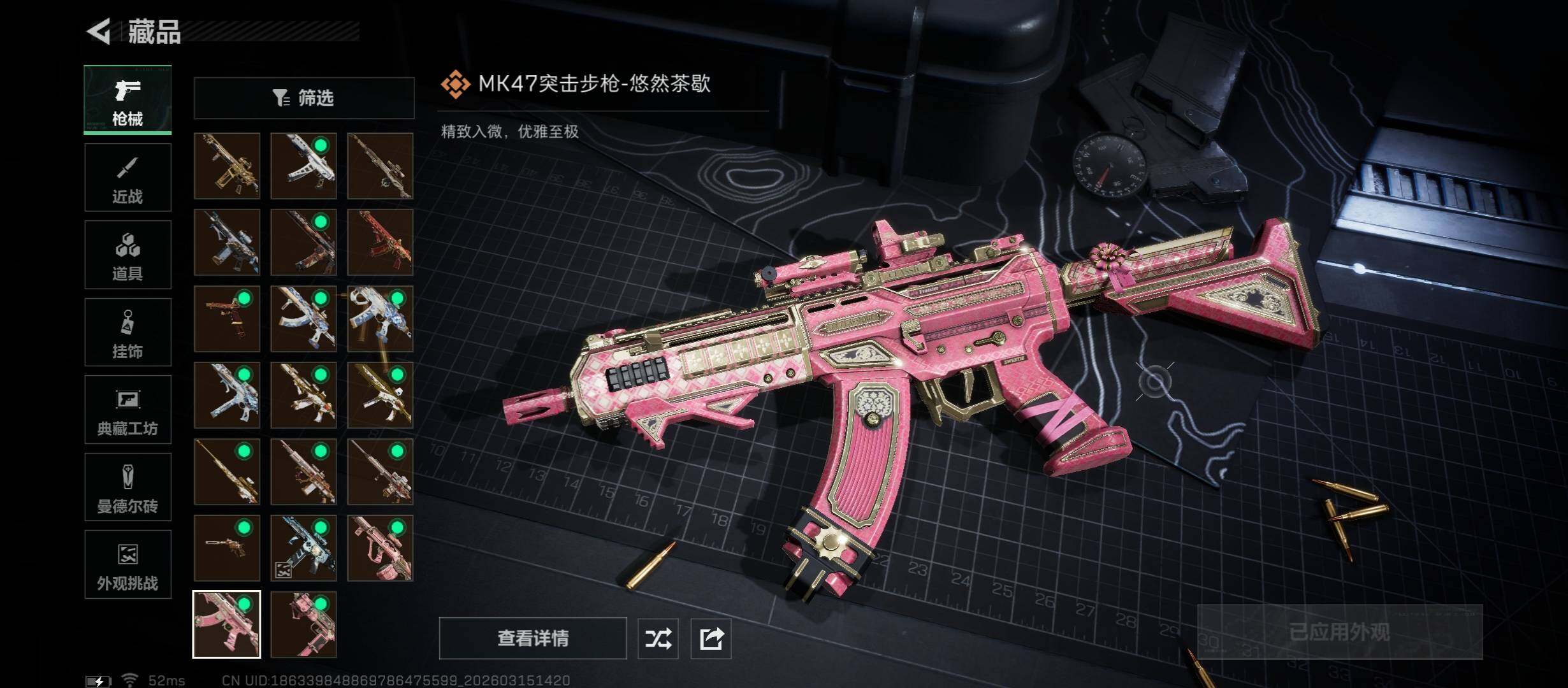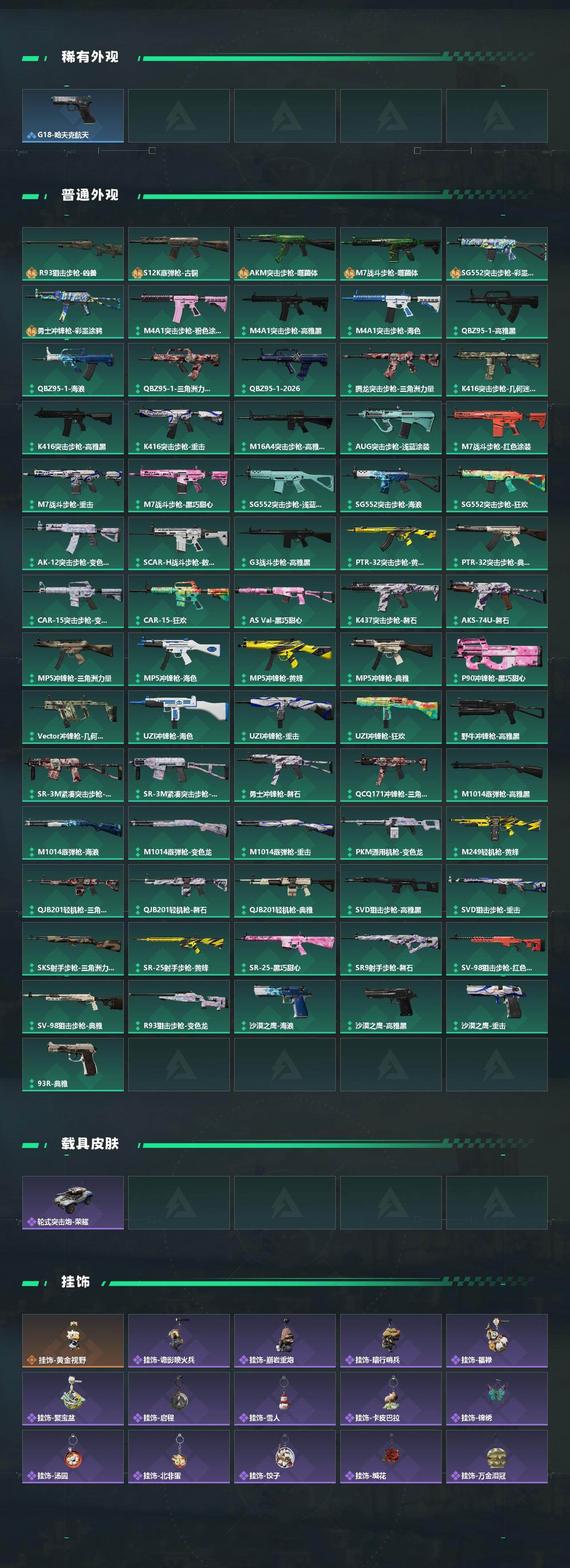 【传说外观】:AKM突击步枪-锦绣,K416突击步枪-行动记录,AUG突击步枪-悠然茶歇,SG552