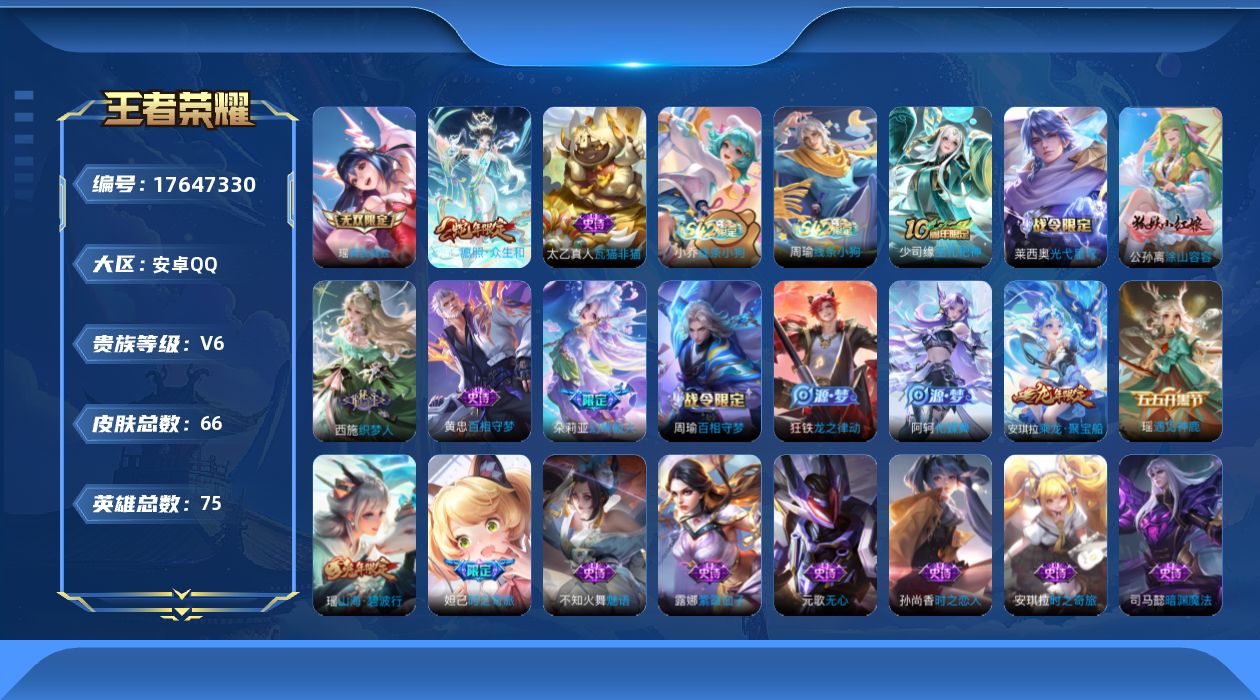 [17647330]【精品号手慢无】低场次女小号 无双皮瑶真我赫兹 优质皮肤时之奇旅-妲己,山海·碧波行,愿照·众生和 夺宝175次 10个性按键
