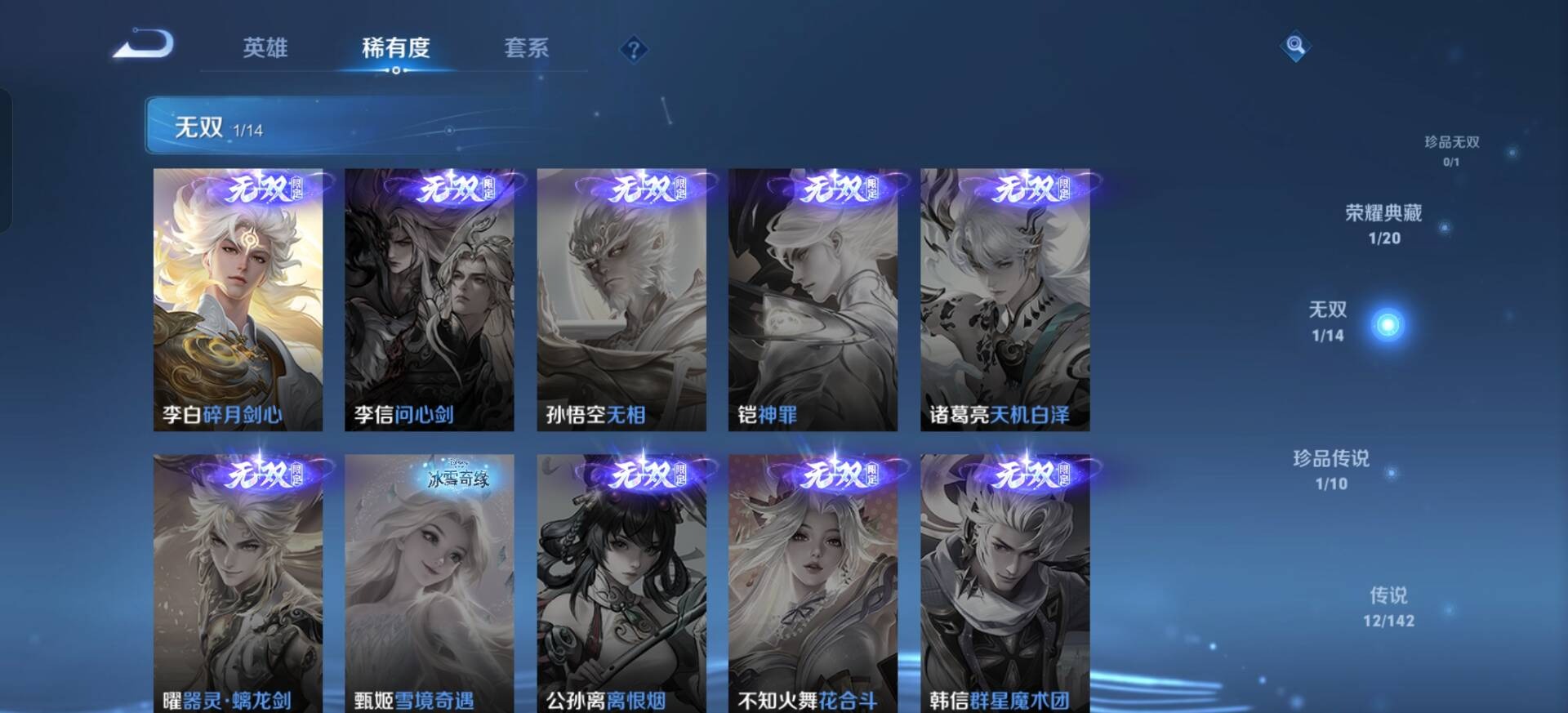 ]V6 1典藏 1无双 1珍品传说 12传说 116英雄 20