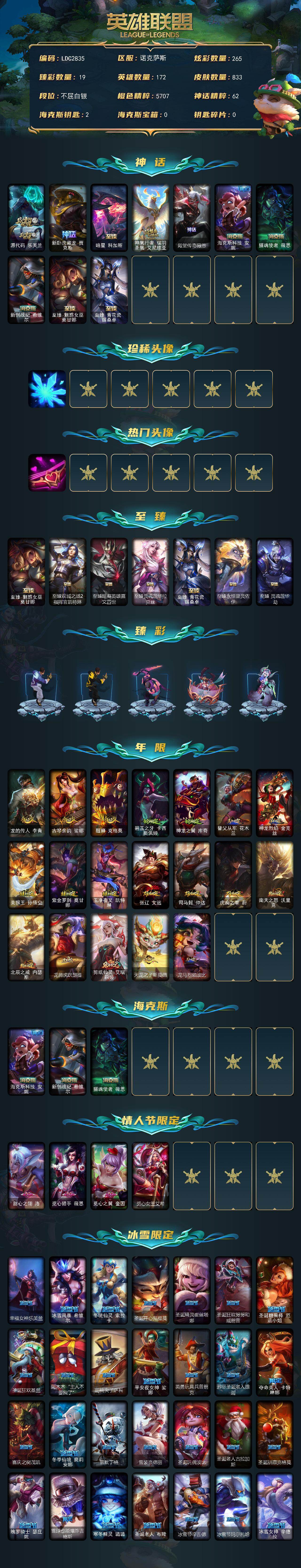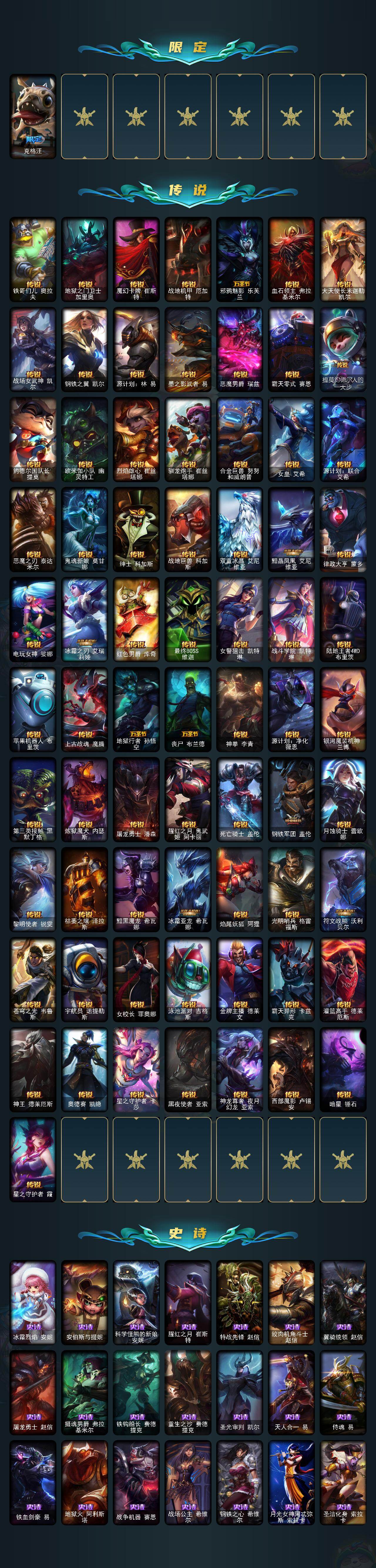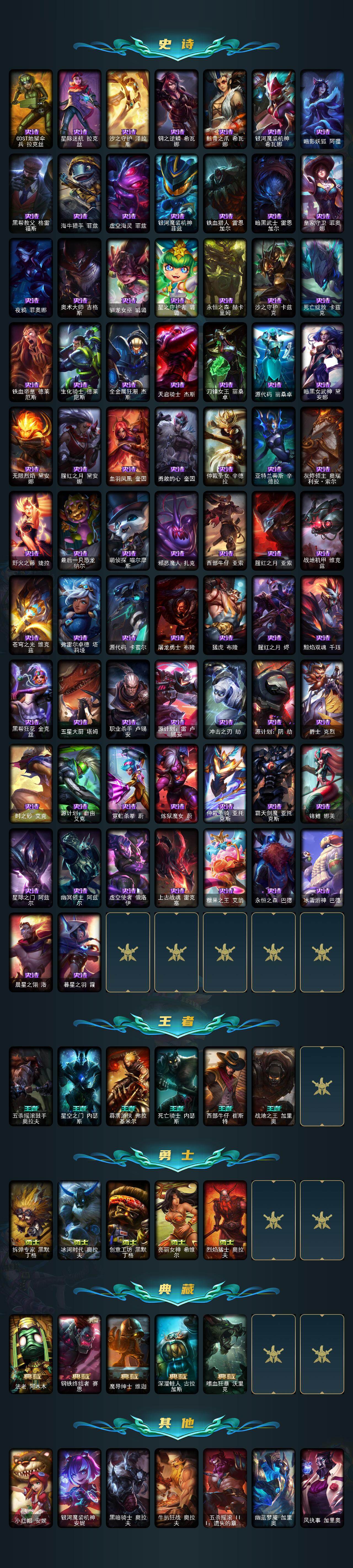 172英雄/833皮肤/4终极/15神话/145限定/19臻彩/2