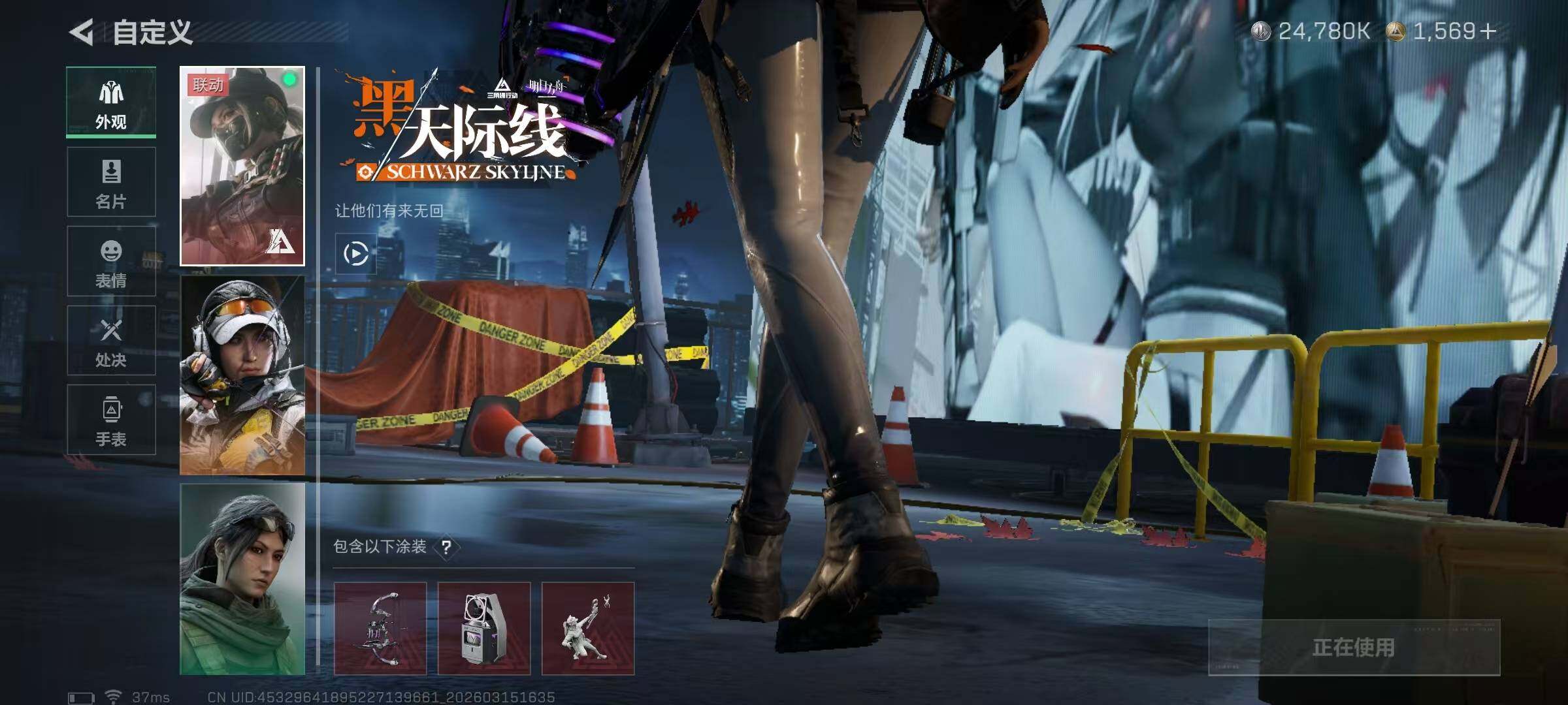 【干员外观】:红狼-蚀金玫瑰,骇爪-水墨云图,露娜-黑·天际线,威龙-凌霄戍卫,威龙-壮志凌云,蜂医-送葬人·无题密令,无名-夜鹰,露娜-金牌射手,乌鲁鲁-荒原猎手,蛊-不羁人生