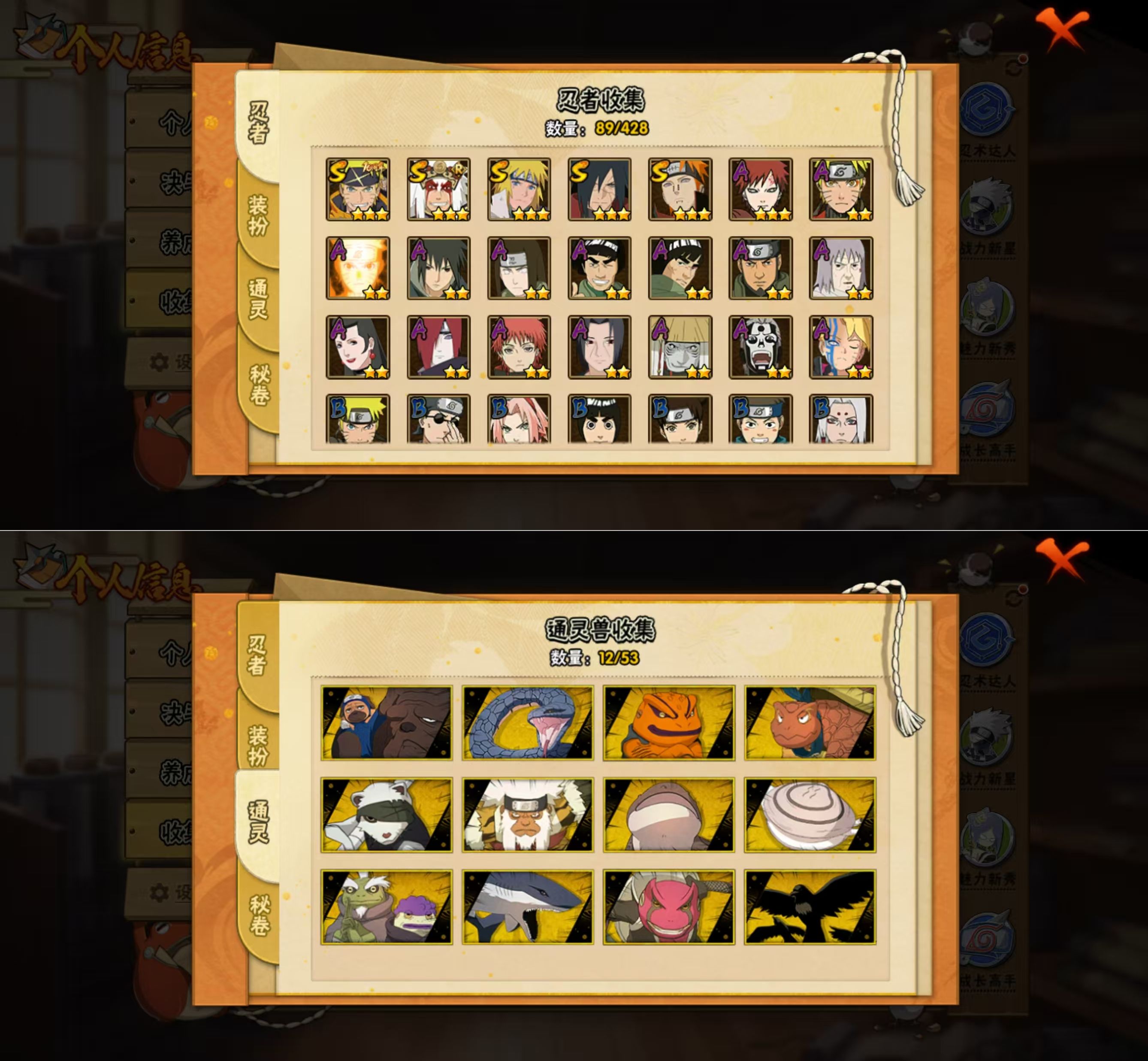 【A级】蝎 我爱罗「疾风传」 飞段「死司凭血」 长门「青年」 宇智波鼬「夏日限定」 迈特凯「青春爆炸」 干柿鬼鲛 漩涡鸣人「仙人模式」 漩涡鸣人「九尾查克拉」 漩涡博人「桃式显现」 千代「近松十人卫」 猿飞阿斯玛 宇智波泉奈 迈特凯 日向宁次「忍界大战」 不缘
