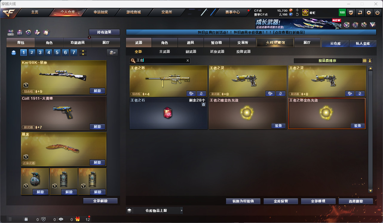 广东一区,等级102,王者武器4,炫金武器2,V武器42,