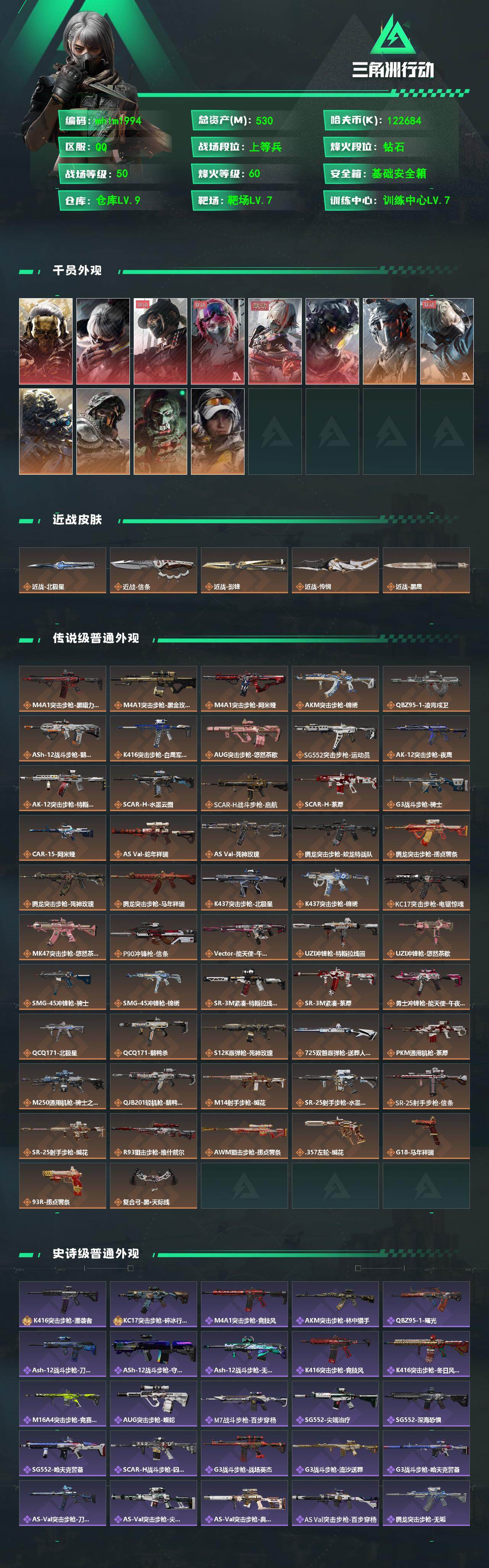 530m总资产-122684k哈伏币-60烽火等级-钻石-50战场等级-上等兵