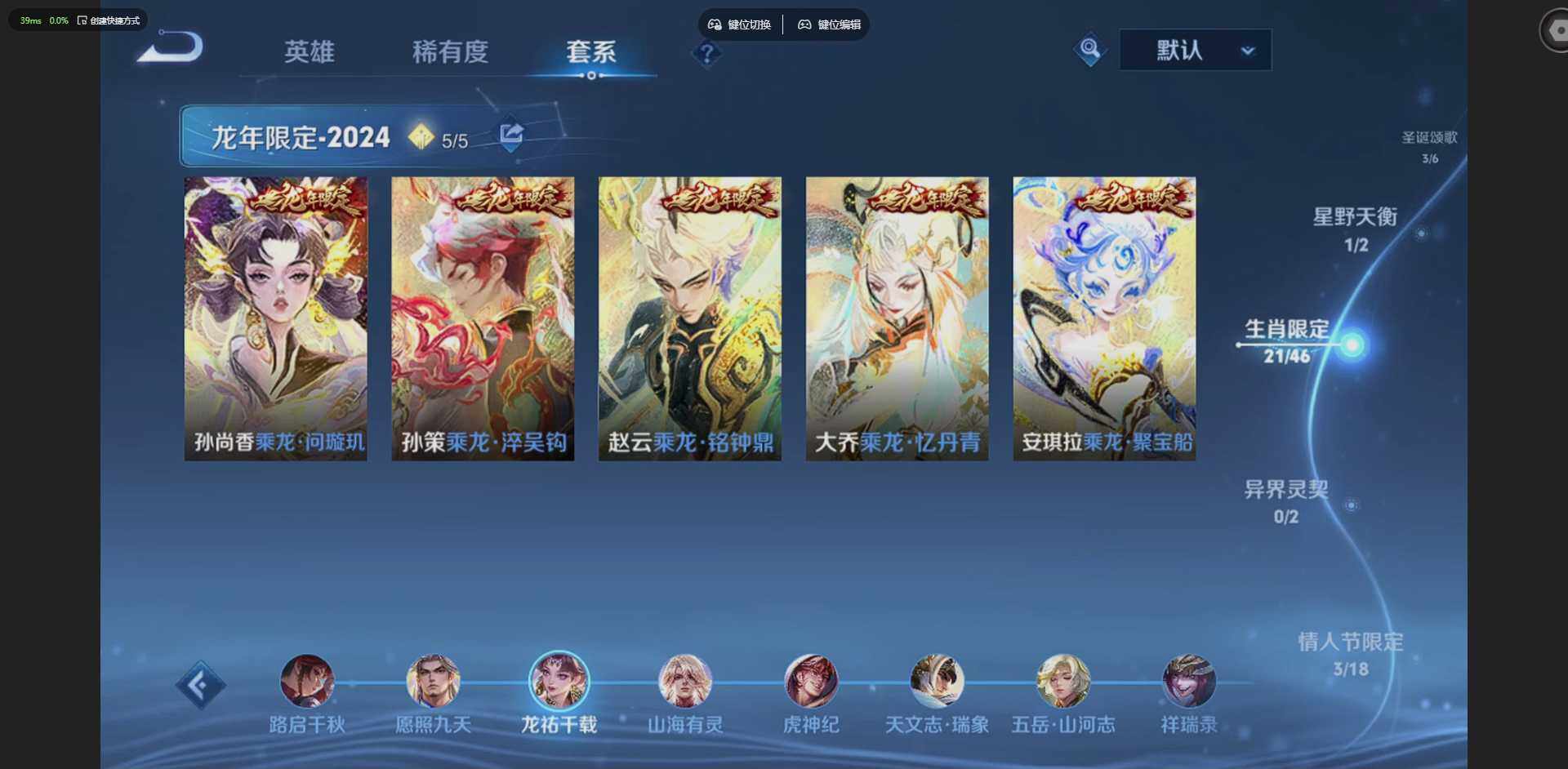 【KK3791】【马年限定全套 龙年限定全套 】【金标吕布 金标达摩 金标狂铁 金标老夫子 金标孙策】贵族等级: V10 英雄数: 128 皮肤数: 458 荣耀水晶: 无限飓风号,鸣剑·曳影,九霄神辉,赤影疾锋 无双皮: 离恨烟,器灵·螭龙剑,天机白泽,无相,问心剑 珍品传说: 怪盗基德,时之奇旅-孙策,黑崎一护,沧流箭 星传说: 未来机甲,幽冥之眼,星际治安官 传说皮: 黄金狮子座,冠军飞将,云鹰飞将,绛天战甲,炽阳神光,一念神魔,末日机甲-孙尚香,地狱之眼,时之恋人-刘备,淬星耀世,超时空