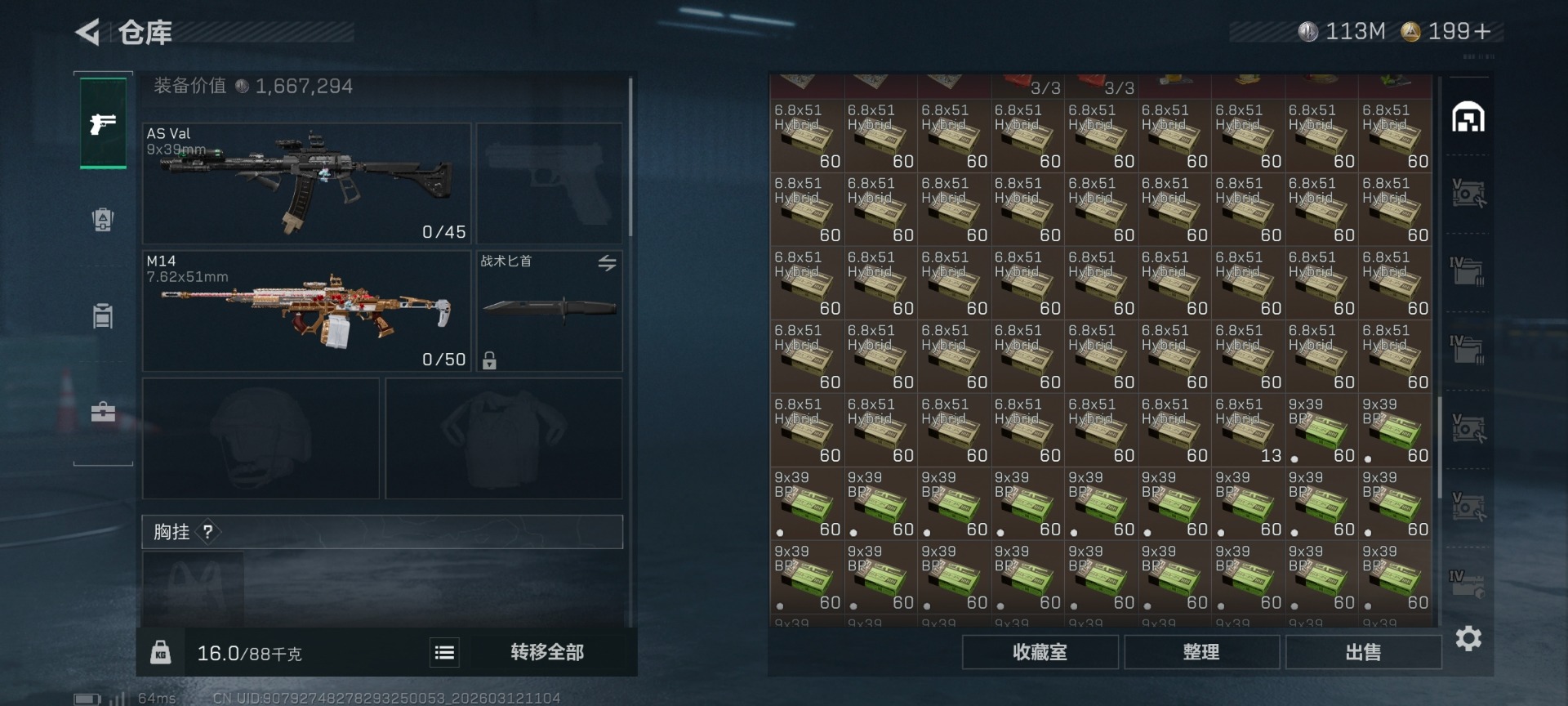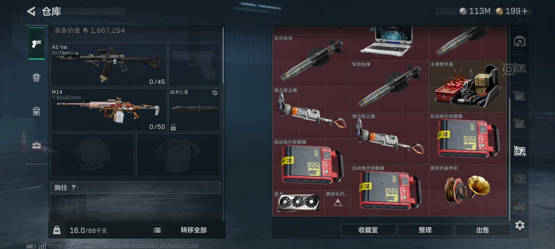 [17646254]总资产:612.7M 1干员外观 2近战传说 22传说枪械 哈夫币:113000K 可二次 可修改实名