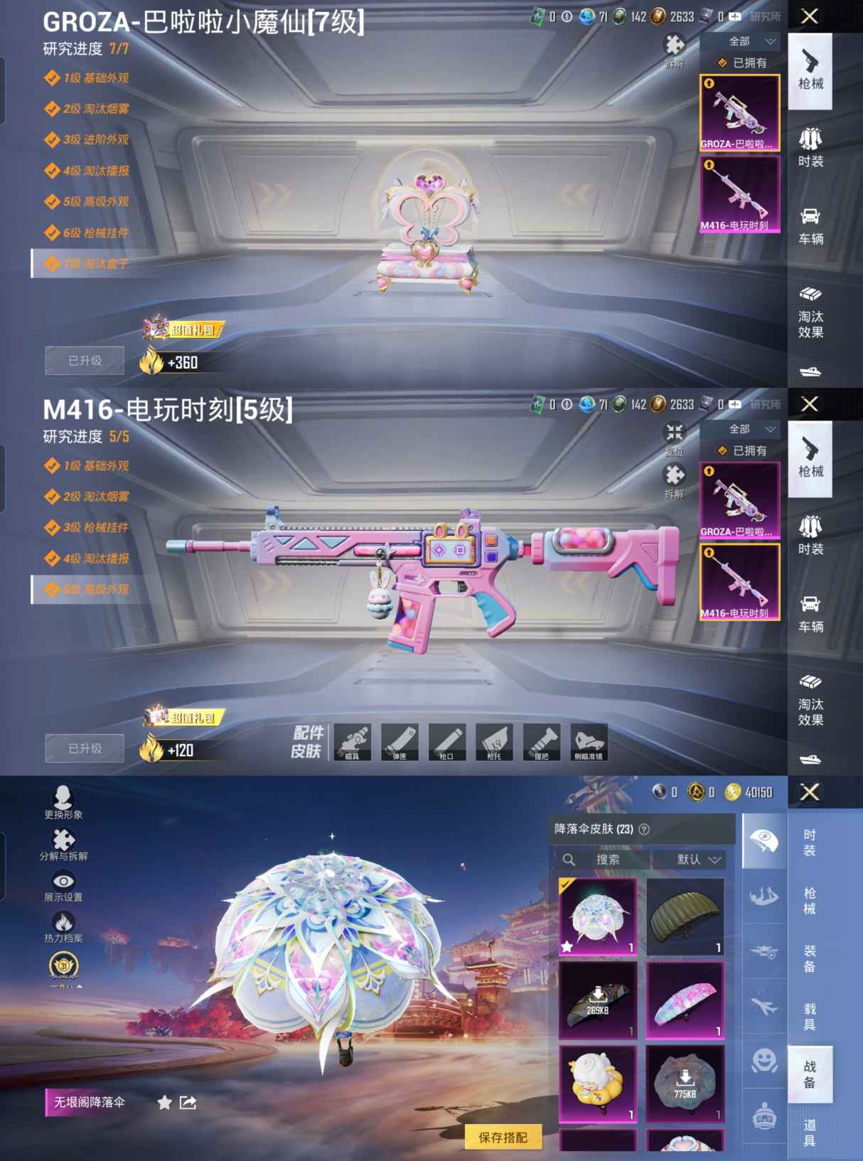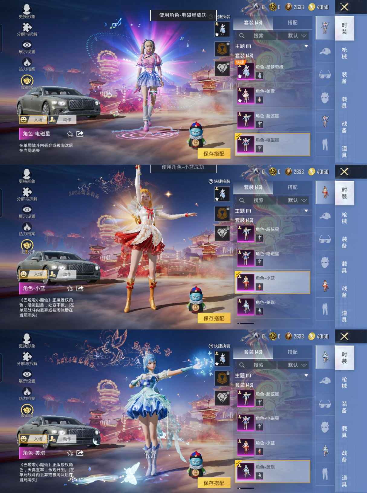 M1046586【女号1载具-6粉装-2特效枪 星梦奇缘 蓝螳螂 角色-美雪,角色-美琪,角色-超弦星】安卓手Q-1载具-6粉装-2特效枪-46套装-50枪皮-5王牌印记-坚韧铂金Ⅴ-18973热力值【1载具】宾利飞驰(布罗德盖棕双色)【6粉装】角色-小蓝,角色-电磁星,角色-星梦奇缘,角色-美雪,角色-美琪,角色-超弦星【2特效枪】GROZA-巴啦啦小魔仙[7级],M416-电玩时刻[5级]【1飞行器】鸡智如我飞行器【88其它衣服和枪皮】SS18特训,风迹短诗,SS35特训,绮丽涂鸦,狙击之神