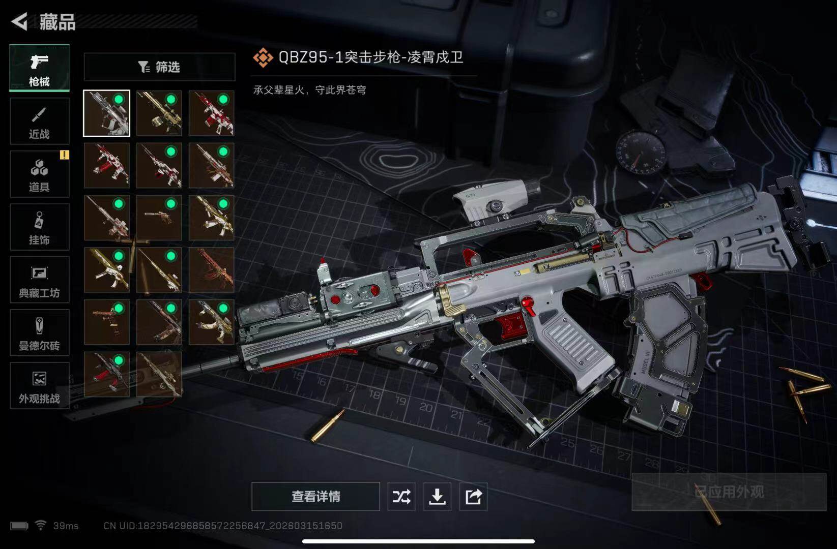 【传说外观】:M4A1突击步枪-蚀金玫瑰,QBZ95-1突击步枪-凌霄戍卫,K416突击步枪-行动记录,SCAR-H战斗步枪-荼蘼,腾龙突击步枪-马年祥瑞,腾龙突击步枪-万金泪冠,MK47突击步枪-暗星,SR-3M紧凑突击步枪-暗星,SR-3M紧凑突击步枪-荼蘼,勇士冲锋枪-万金泪冠,PKM通用机枪-荼蘼,M14射