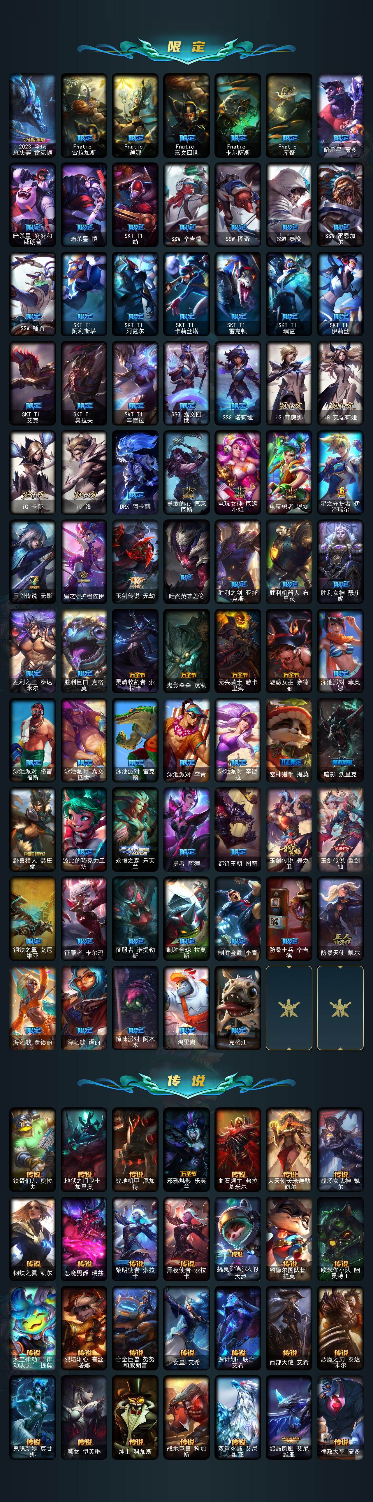 未定级段位-172英雄-941皮肤-687炫彩-1终极-69神话-126限定-88传说-189史诗