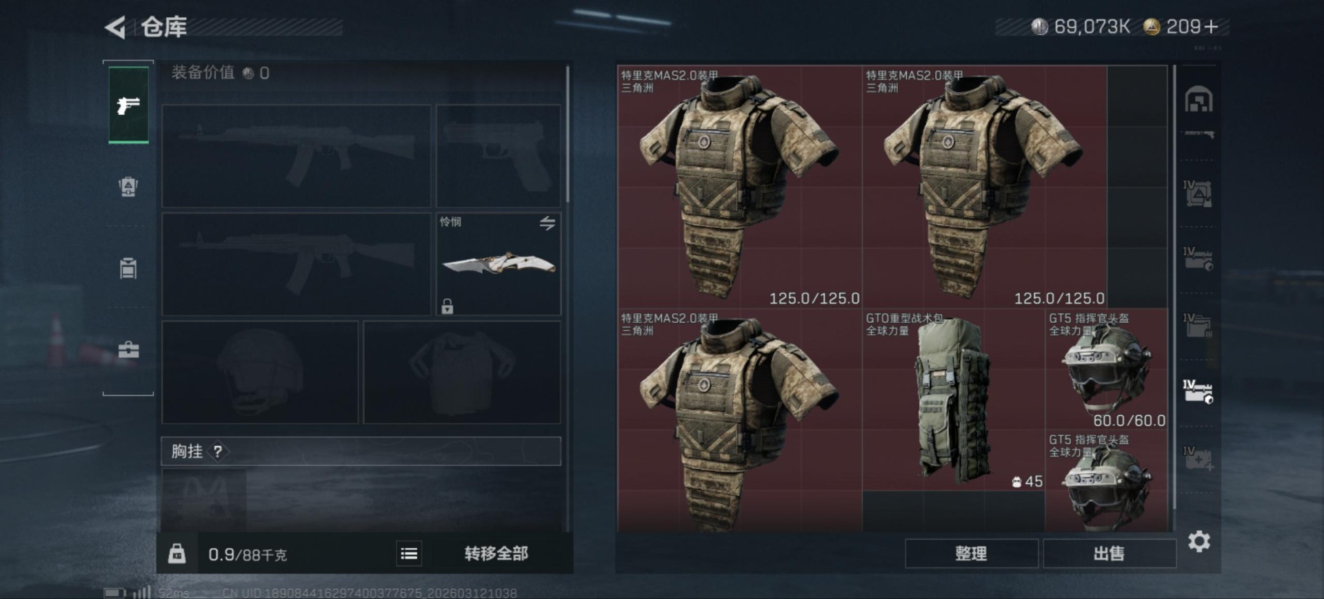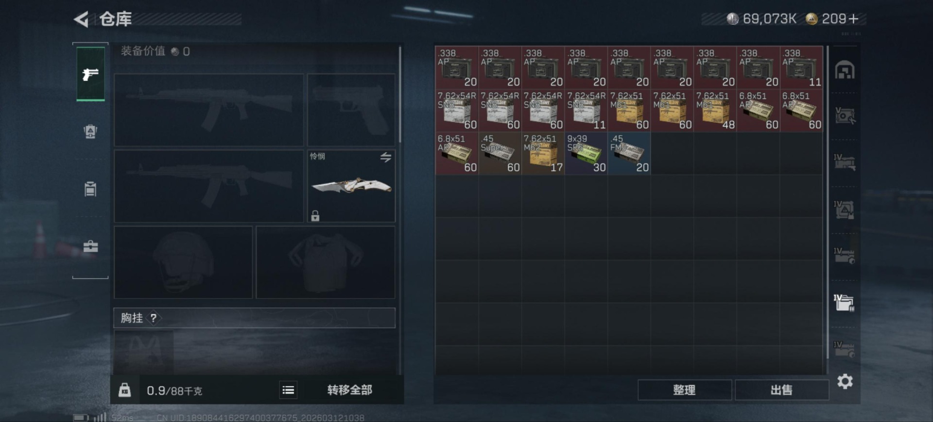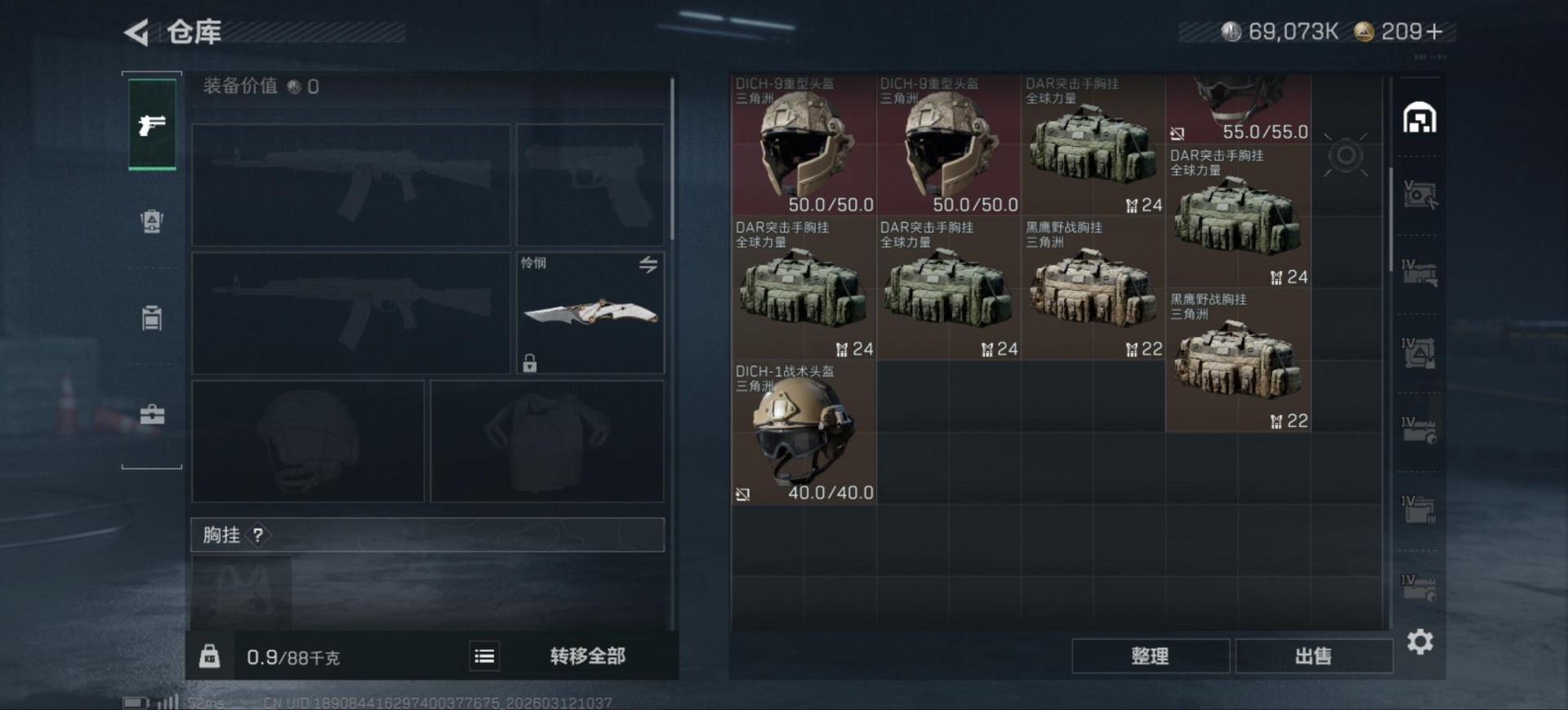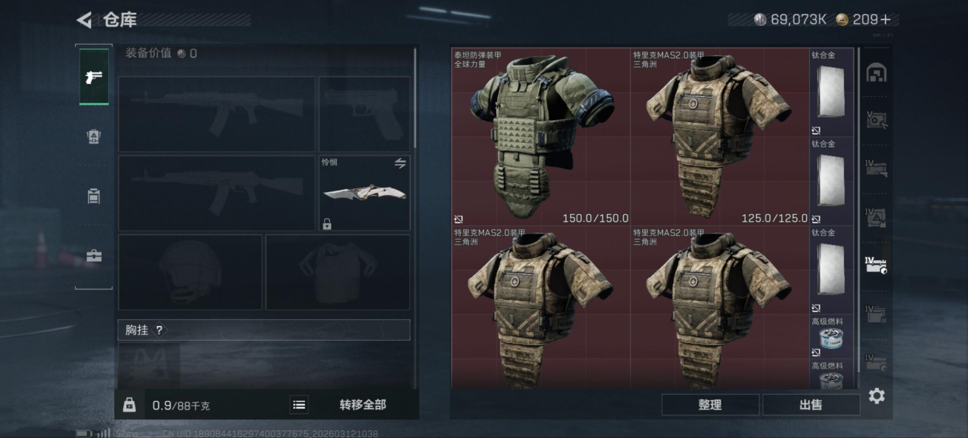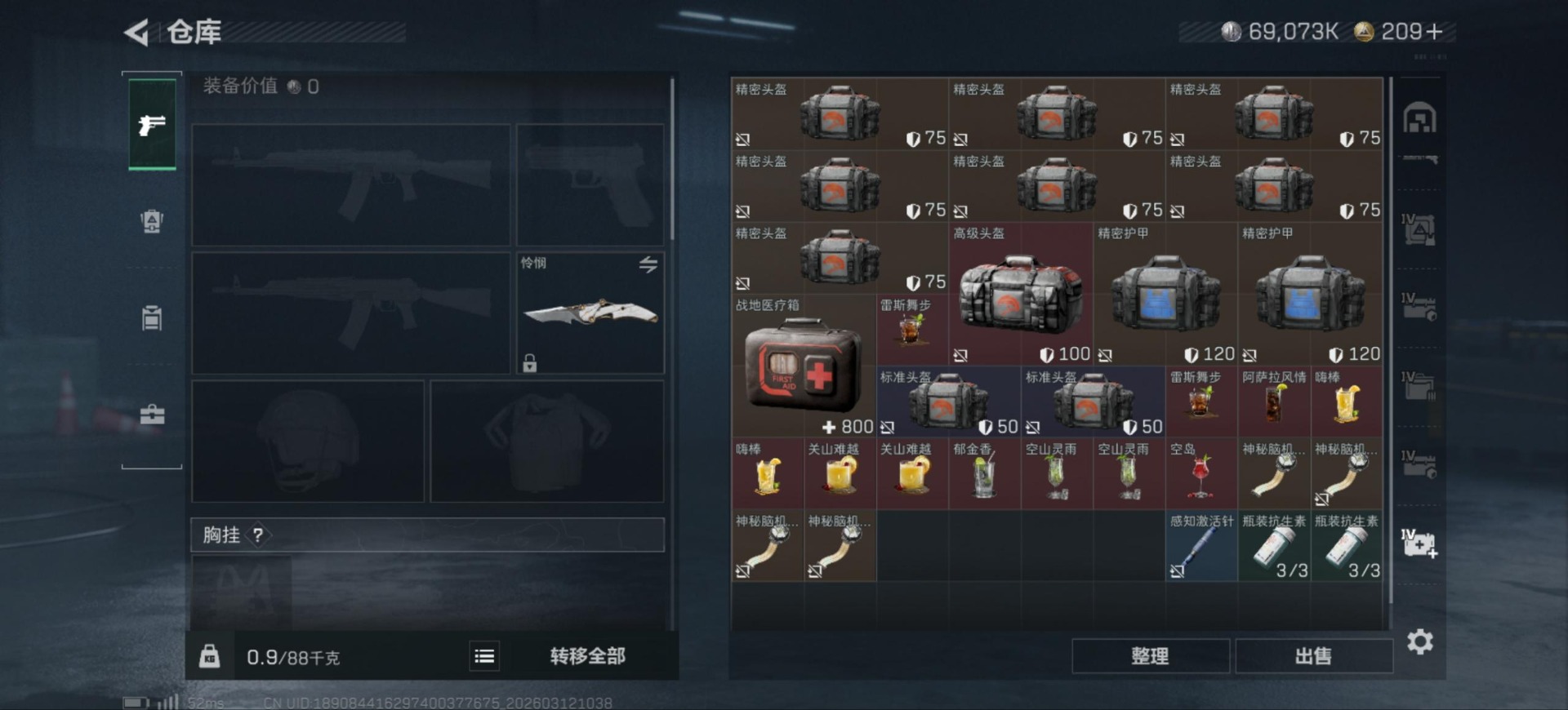 总资产:197.3M 3干员外观 6近战传说 52传说枪械 哈夫币:69.073K 顶级安全箱(3×3)4.11号到期