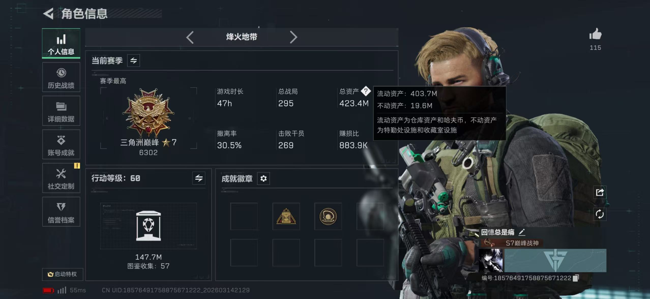 三角洲行动账号,总资产423m,威龙麦晓雯红皮,2s红狼挂件,有海洋之泪
