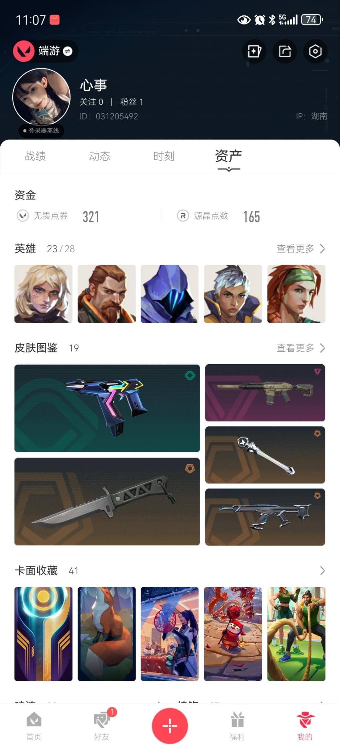 [17649281]4橙皮 1紫皮 19皮肤 23英雄 41卡面 260已用源晶 白银段位