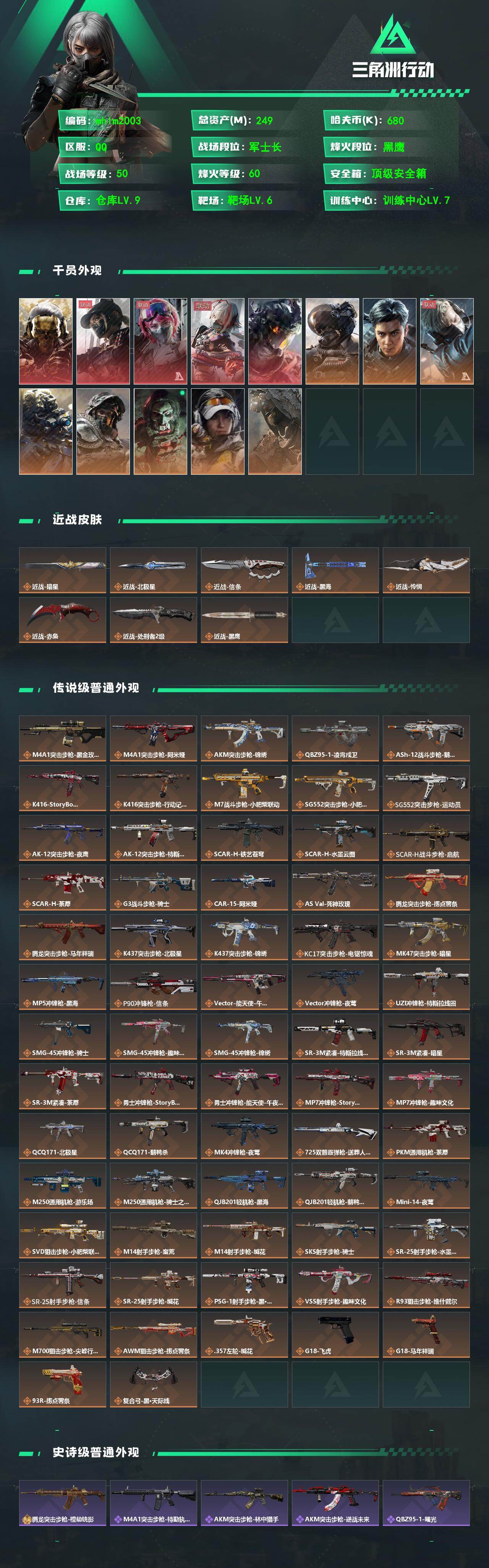 249m总资产-680k哈伏币-60烽火等级-黑鹰-50战场等级-军士长
