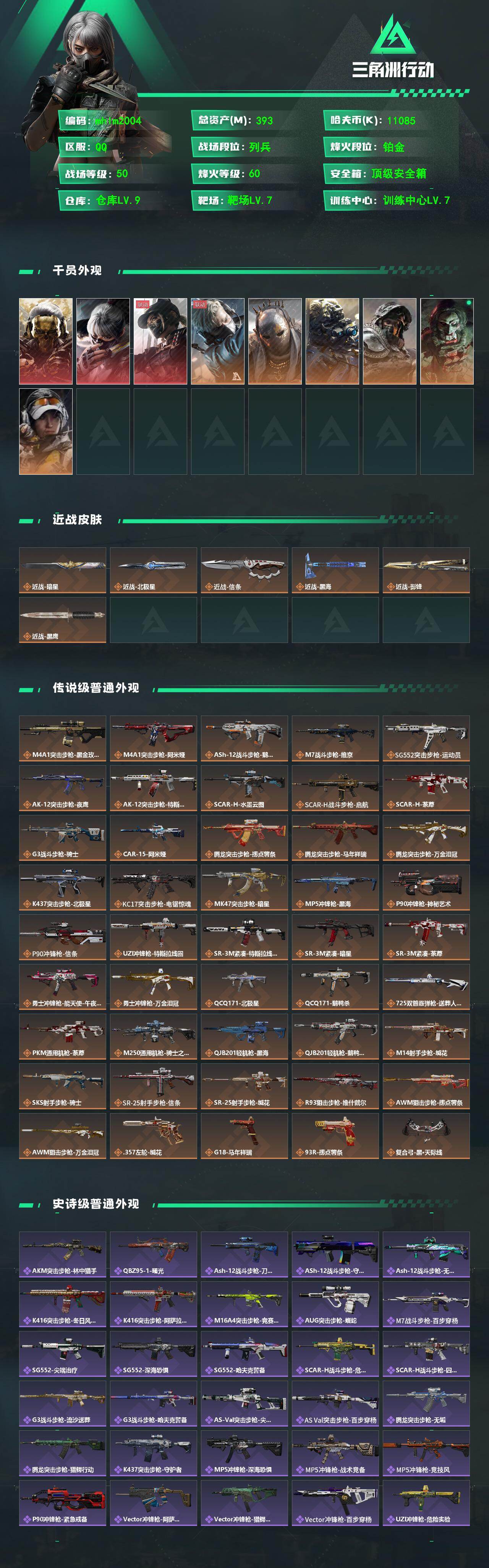 393m总资产-11085k哈伏币-60烽火等级-铂金-50战场等级-列兵