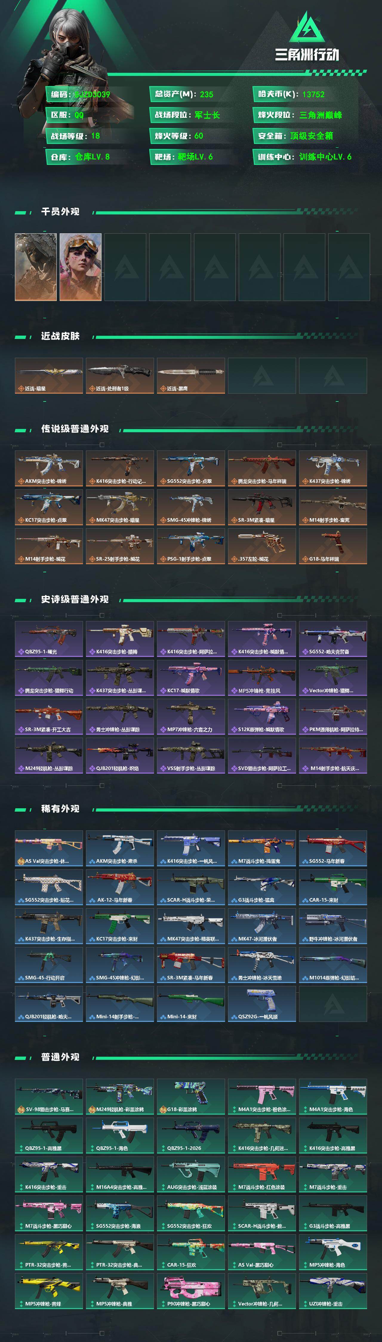235m总资产-13752k哈伏币-60烽火等级-三角洲巅峰-18战场等级-军士长
