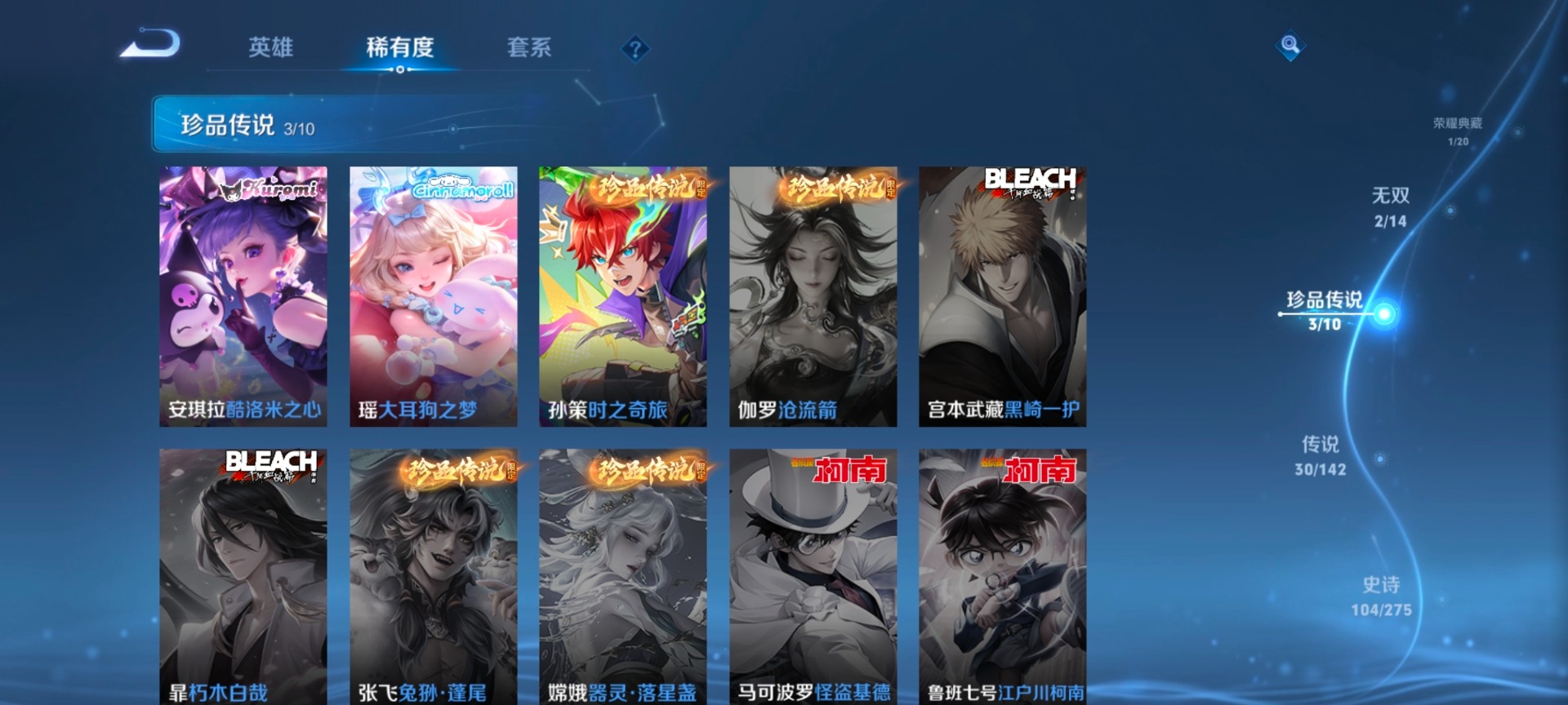 V8 1典藏 2无双 3珍品传说 30传说 127英雄 35