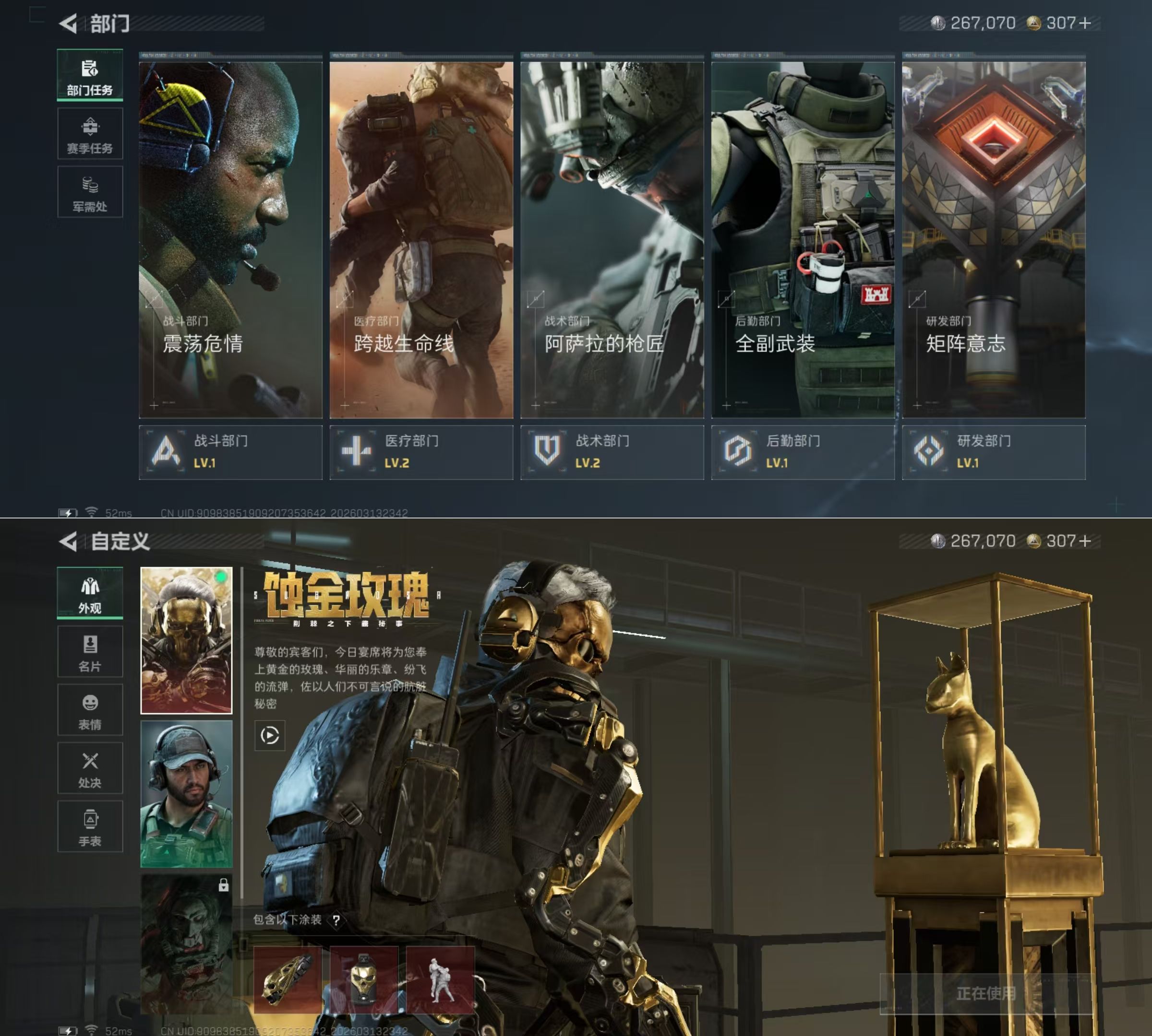 DSJZ1788【刀皮暗星 2红皮蛊-能天使·午夜邮差 红狼-蚀金玫瑰】【总资产(M)】10.23【哈夫币】267.07【行动等级】60