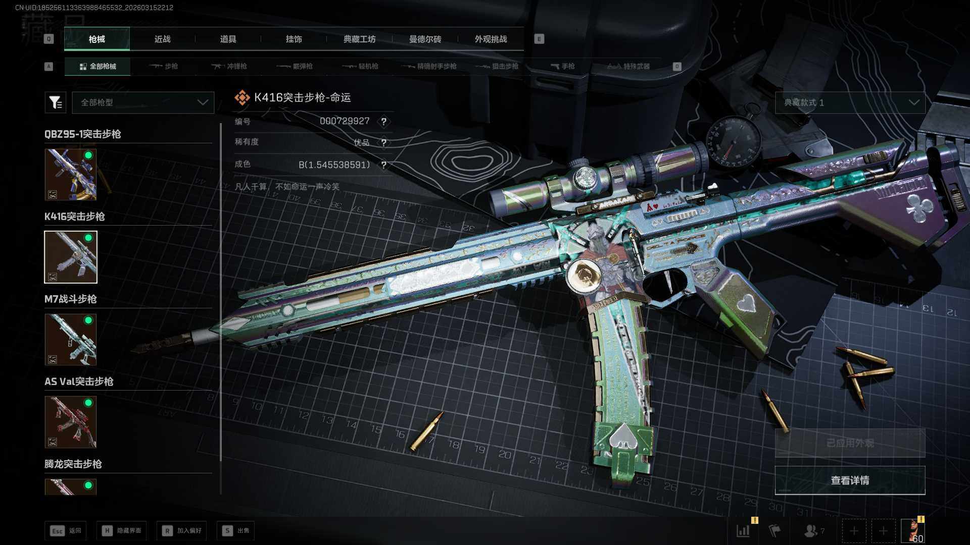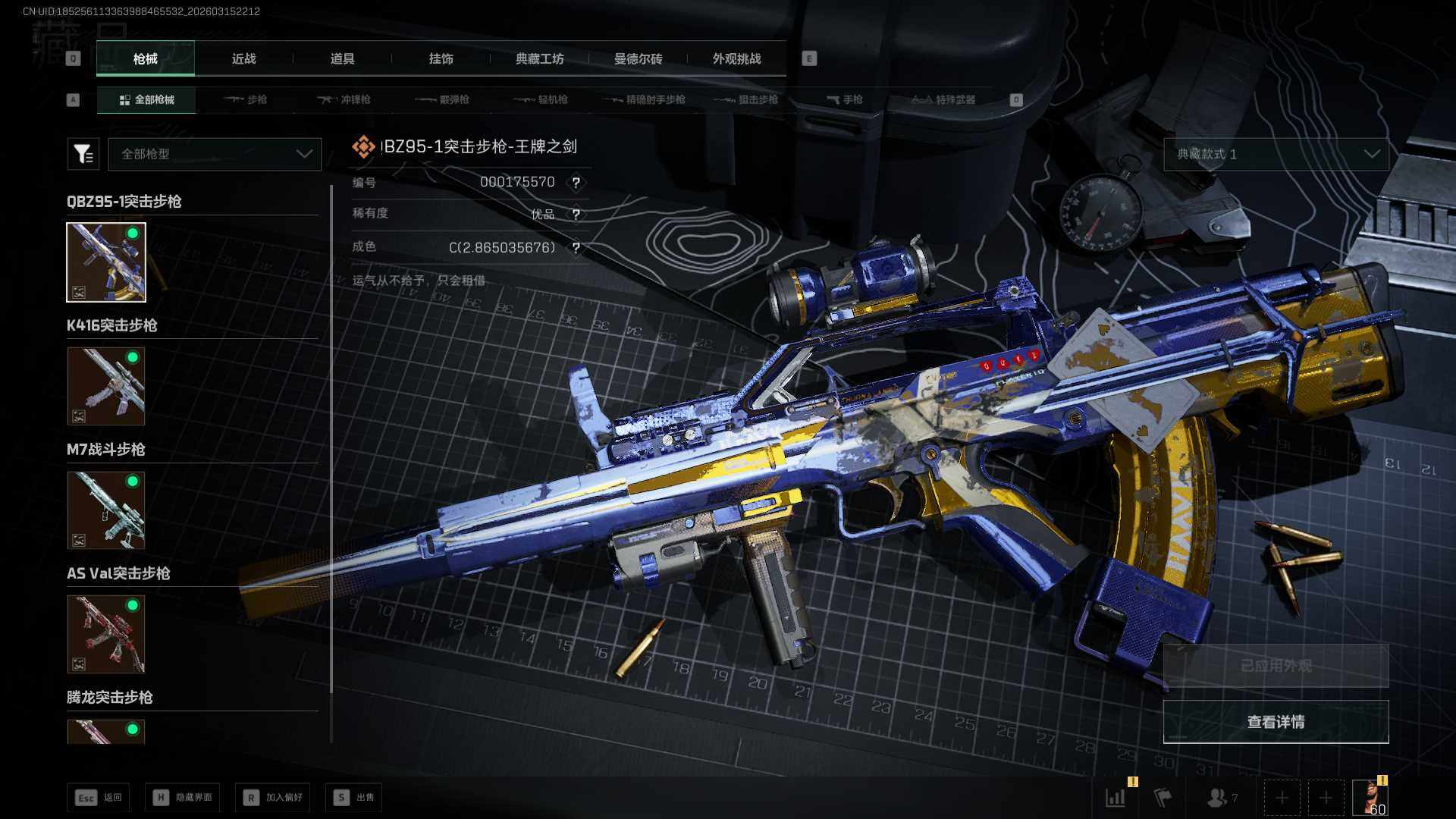 【典藏外观成色】:QBZ95-1突击步枪-王牌之剑(优品C),K416突击步枪-命运(优品B),腾龙突击步枪-气象感应(优品B