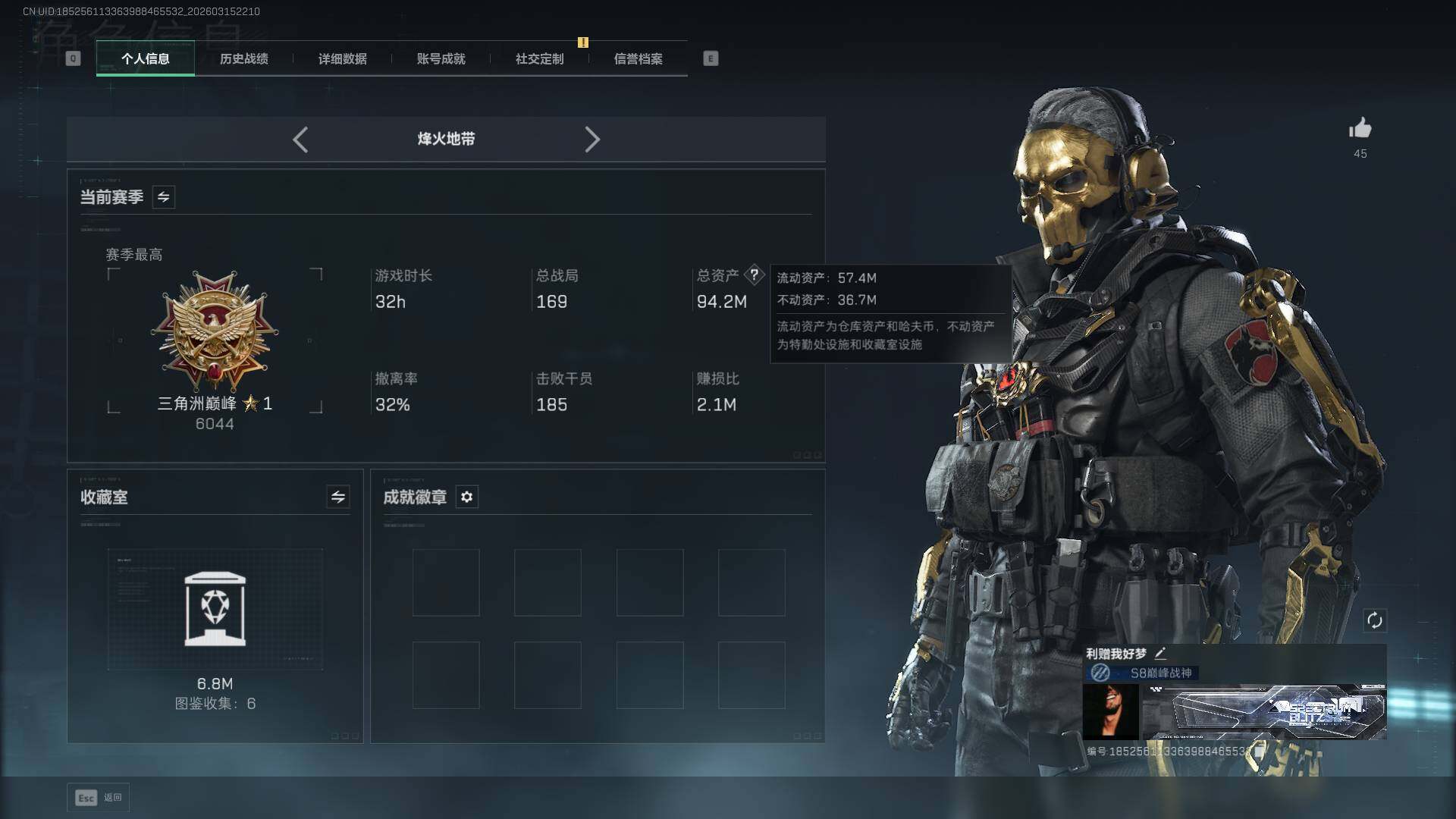 94m总资产-212k哈伏币-60烽火等级-黑鹰-7战场等级-列兵