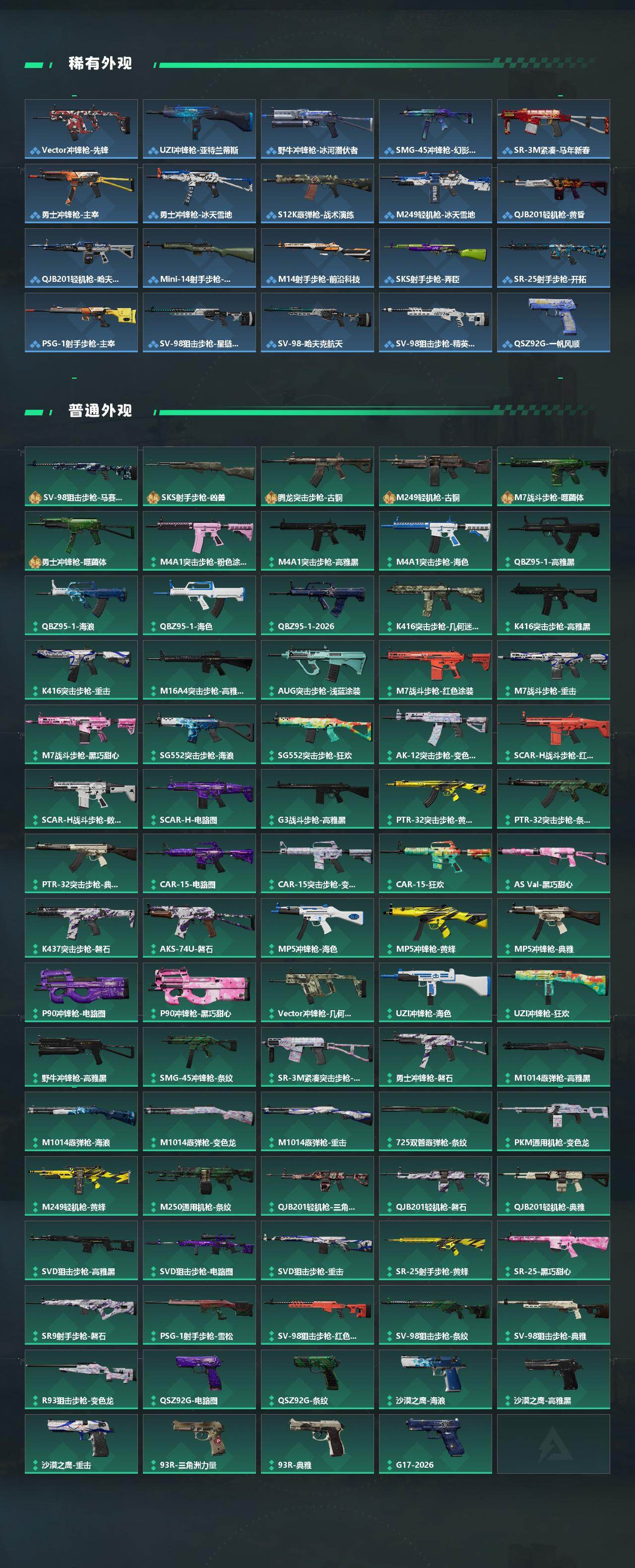 【典藏外观】:QBZ95-1突击步枪-王牌之剑,K416突击步枪-命运,腾龙突击步枪-气象感应,M7战斗步枪-棱镜攻势S2,AS Val突击步枪-悬赏令